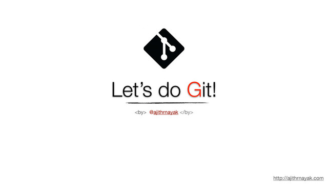 clone <URL> Clone an existing repository E.g. $ cd myProjectFolder $ touch hello_world.txt $ git init E.g. $ git clone [email protected]:ajithrnayak/AJUtilities.git Cloning into 'AJUtilities'...