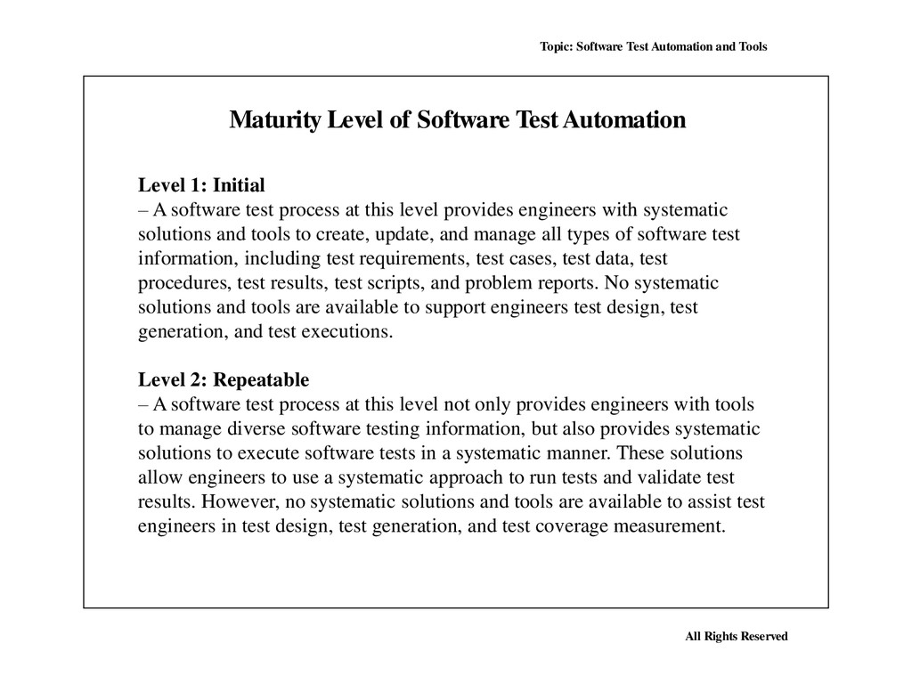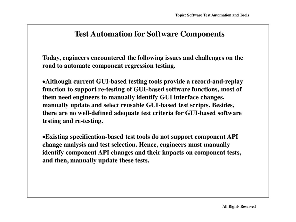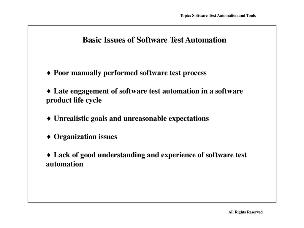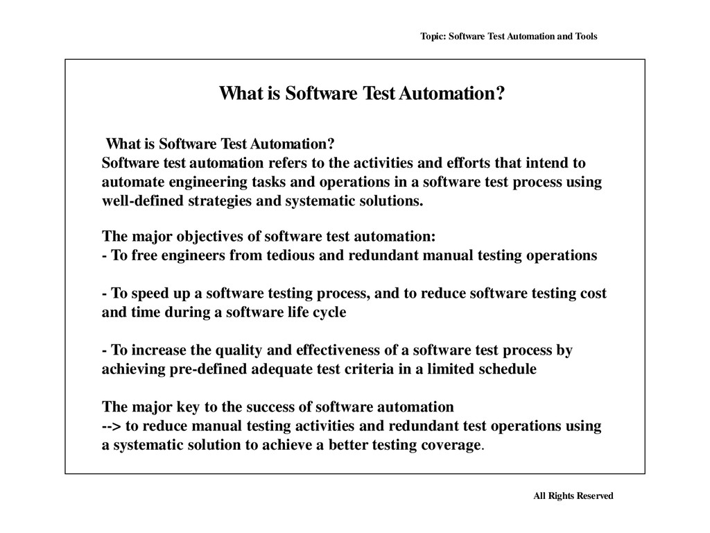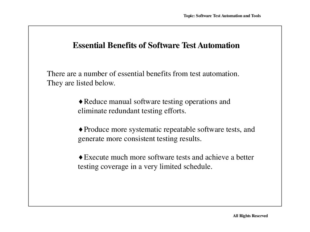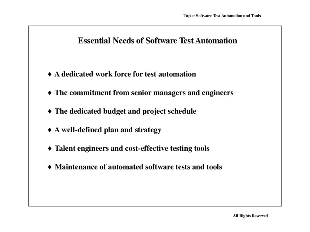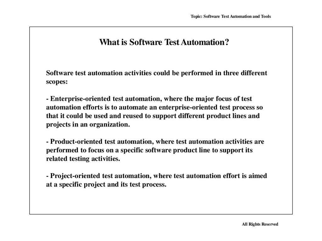 Many, perhaps most, software applications today are written as web-based applications to be run in an Internet browser. The effectiveness of testing these applications varies widely among companies and organizations. In an era of highly interactive and responsive software processes where many organizations are using some form of Agile methodology, test automation is frequently becoming a requirement for software projects. Test automation is often the answer. Test automation means using a software tool to run repeatable tests against the application to be tested. For regression testing this provides that responsiveness.