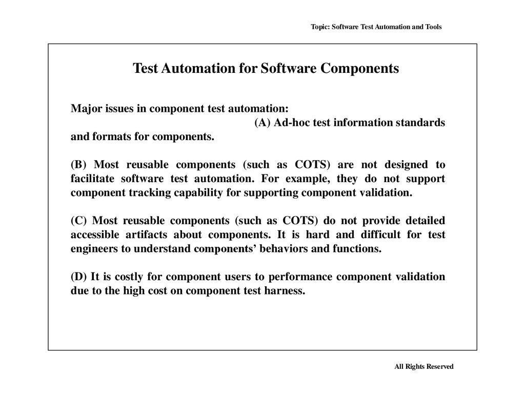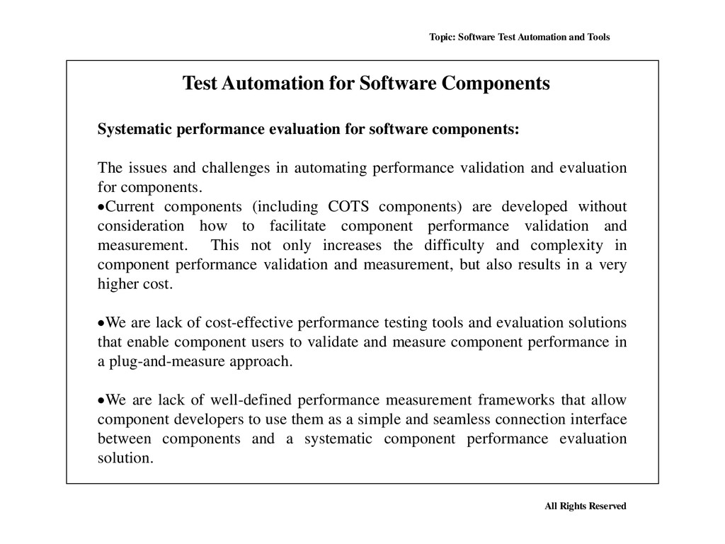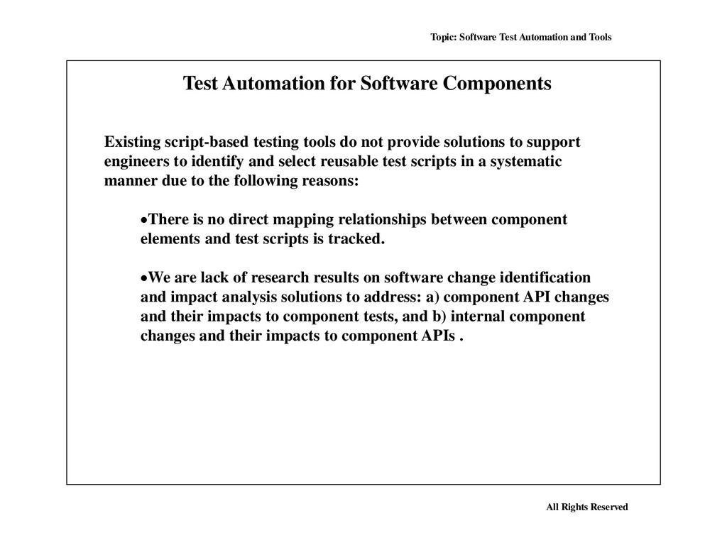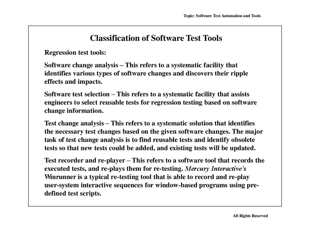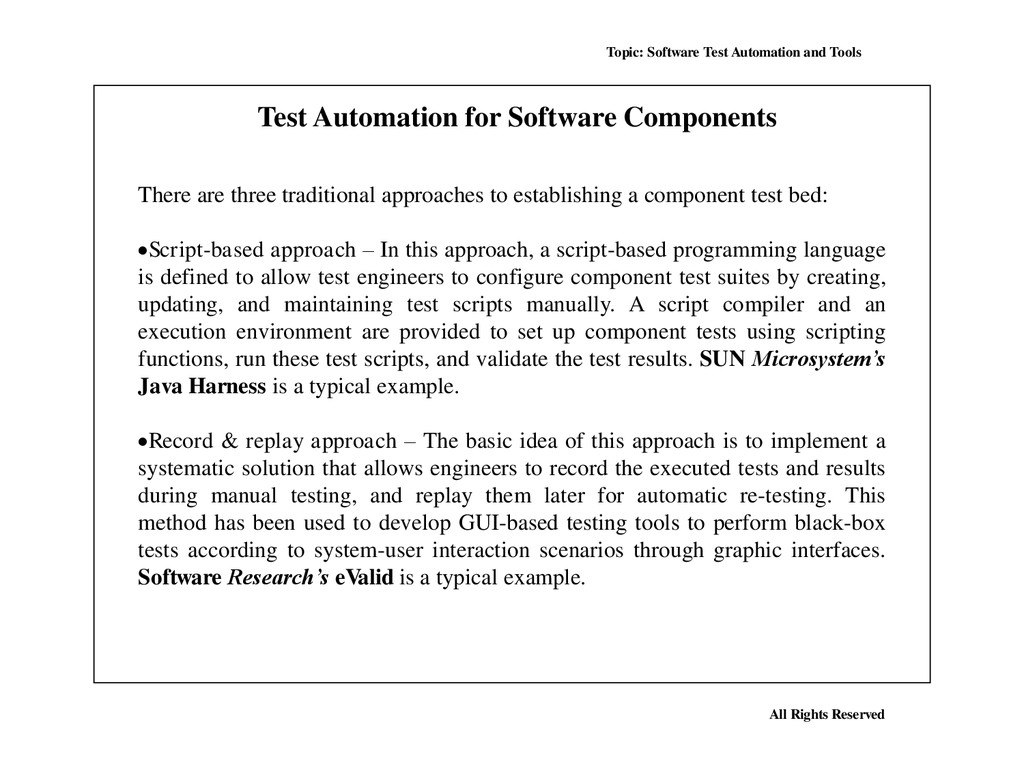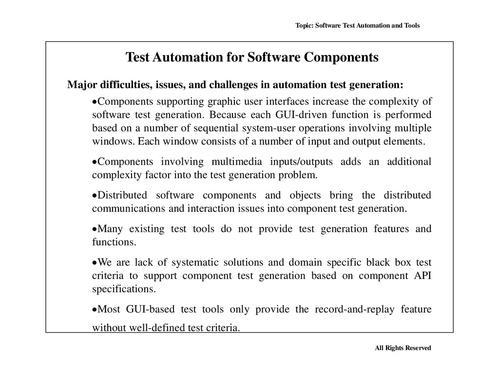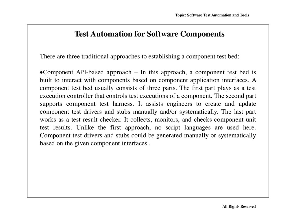 Many, perhaps most, software applications today are written as web-based applications to be run in an Internet browser. The effectiveness of testing these applications varies widely among companies and organizations. In an era of highly interactive and responsive software processes where many organizations are using some form of Agile methodology, test automation is frequently becoming a requirement for software projects. Test automation is often the answer. Test automation means using a software tool to run repeatable tests against the application to be tested. For regression testing this provides that responsiveness.