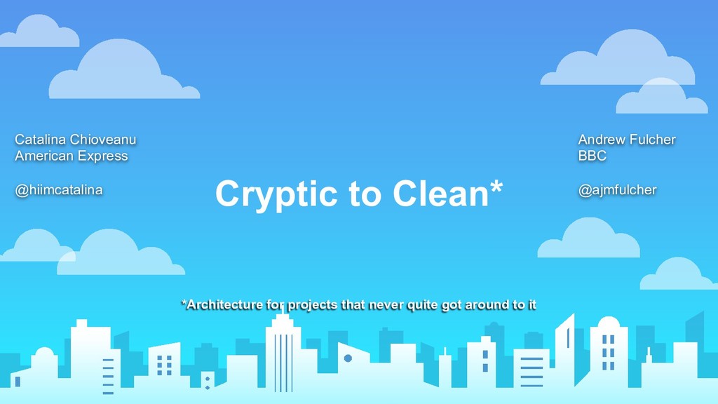 Andrew and Catalina will talk about Clean Architecture, why it might make your life easier, and its relevance to the direction that Android’s heading in. They will discuss how it can fit with your current codebase and existing endpoints. And they will share with you some practical tips on how to bring your team with you on the journey. But no giant space goats. Sorry.