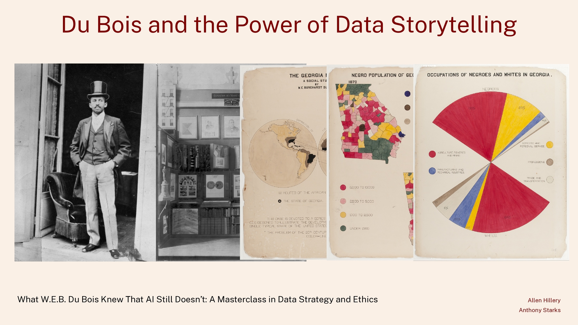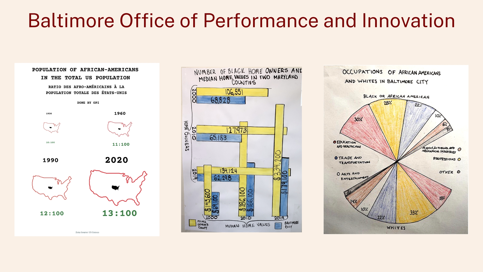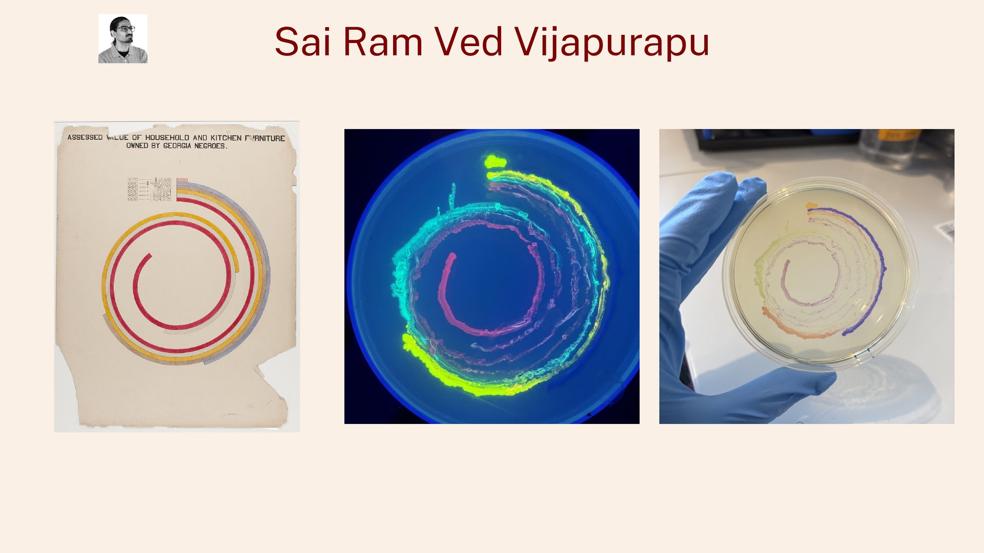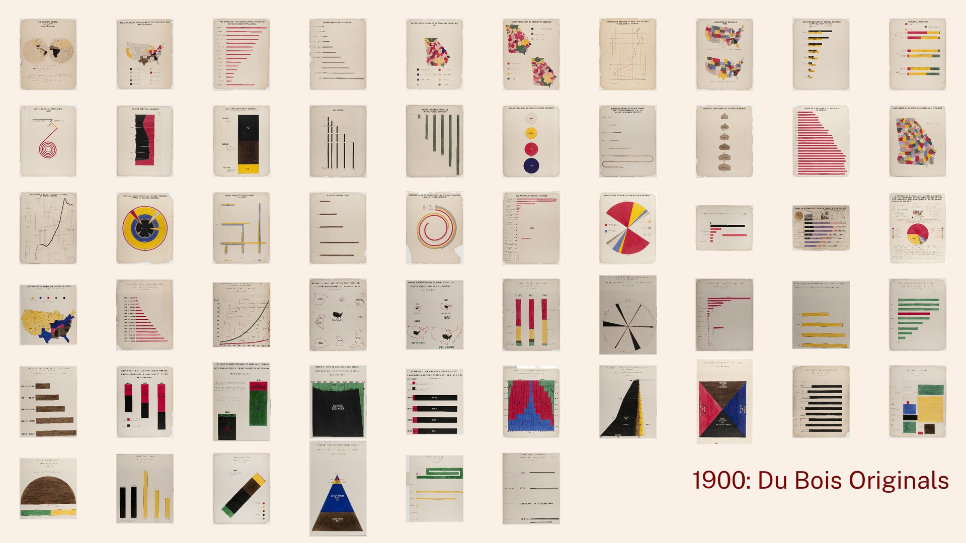 the Du Bois spiral and created a 34” x 38” collage. The background is inspired by the quilts of Gees' Bend with the graphs superimposed on with suede cord and paper.