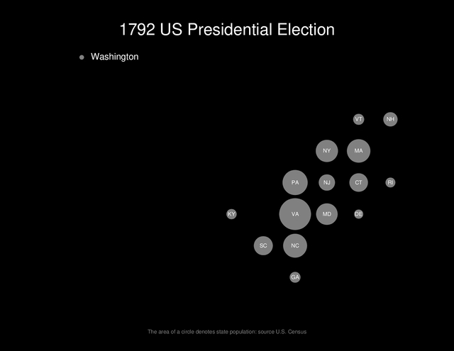 CT DE FL GA IL IN IA KS KY LA ME MD MA MI MN MS MO NV NH NJ NY NC OH OR PA RI SC TN TX VT VA WV WI The area of a circle denotes state population: source U.S. Census