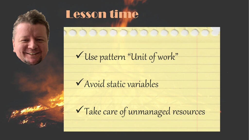 Lesson time üUse pattern “Unit of work” üAvoid static variables