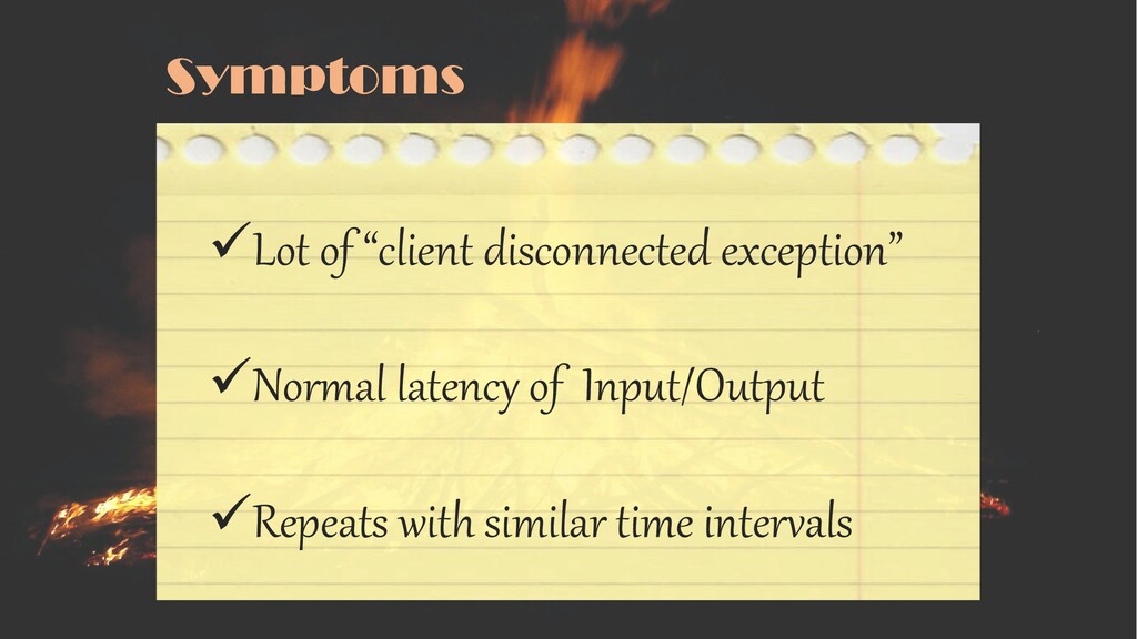 üLot of “client disconnected exception” üNormal latency of Input/Output üRepeats