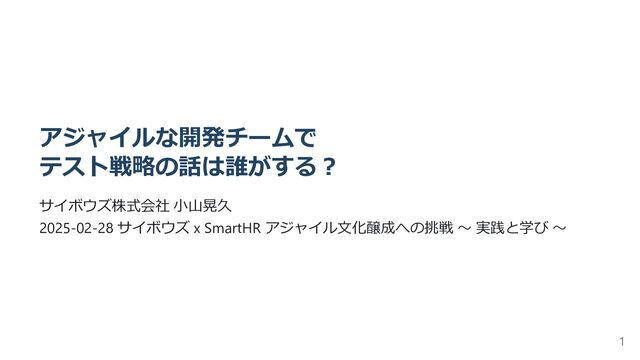 アジャイルな開発チームで テスト戦略の話は誰がする? サイボウズ株式会社 小山晃久 2025-02-28 サイボウズ x SmartHR アジャイル文化醸成への挑戦 ~