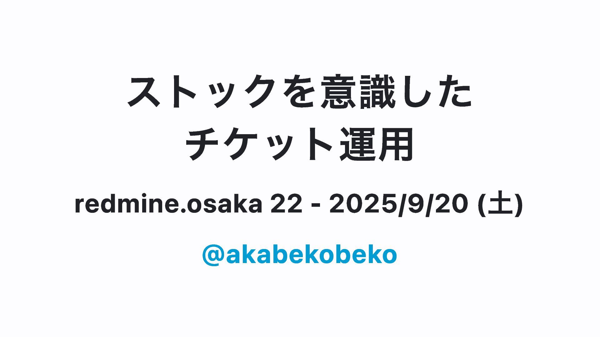 ストックを意識した チケット運用 redmine.osaka 22 - 2025/9/20 (土) @akabekobeko