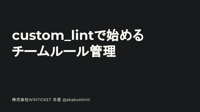 custom_lintで始める チームルール管理 株式会社WINTICKET 赤星 @akaboshinit