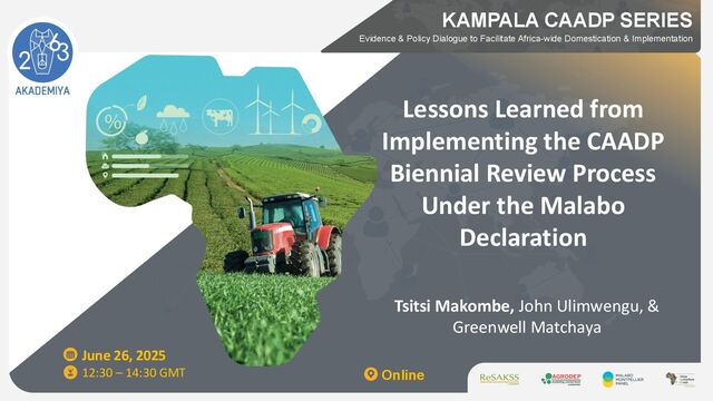 KAMPALA CAADP SERIES Lessons Learned from Implementing the CAADP Biennial Review Process Under the Malabo Declaration June 26, 2025 12:30 – 14:30 GMT Online Tsitsi Makombe, John Ulimwengu, & Greenwell Matchaya