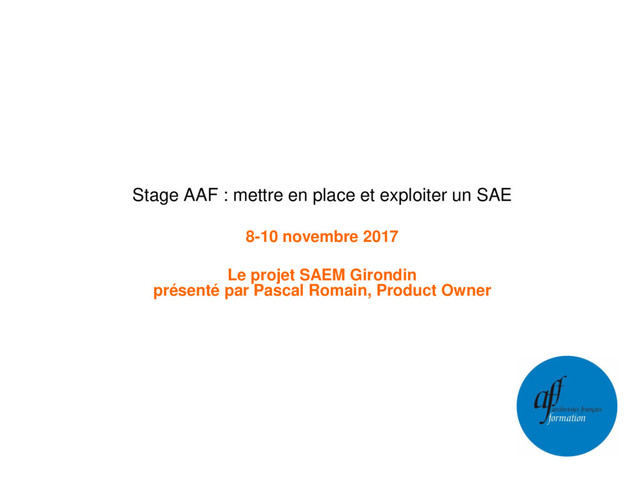 (https://extranet.logilab.fr/project/SAEM-Ref) Déclinaison par le prestataire en tâches de développement et estimation de la charge Définition de sprints : développements sur 3-4 semaines, recettes, poursuite Mise en œuvre du projet et méthodogie