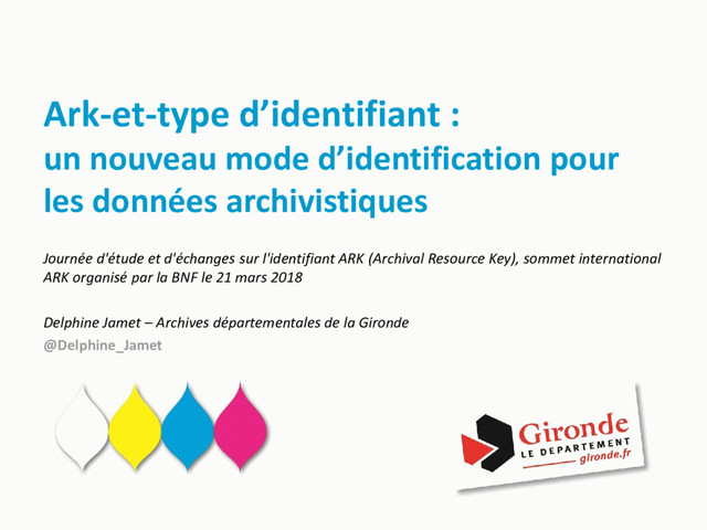archivistiques Journée d'étude et d'échanges sur l'identifiant ARK (Archival Resource Key), sommet international ARK organisé par la BNF le 21 mars 2018 Delphine Jamet – Archives départementales de la Gironde @Delphine_Jamet