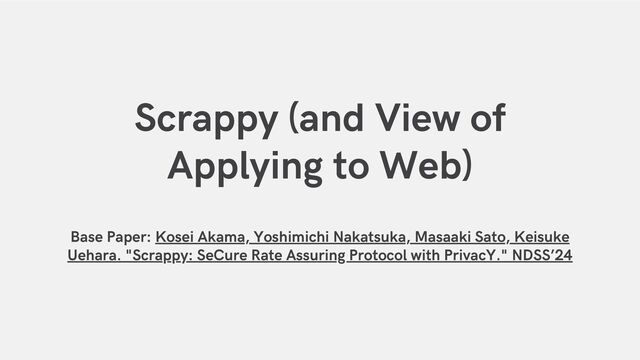 Base Paper: Kosei Akama, Yoshimichi Nakatsuka, Masaaki Sato, Keisuke Uehara. "Scrappy: SeCure Rate Assuring Protocol with PrivacY." NDSS’24