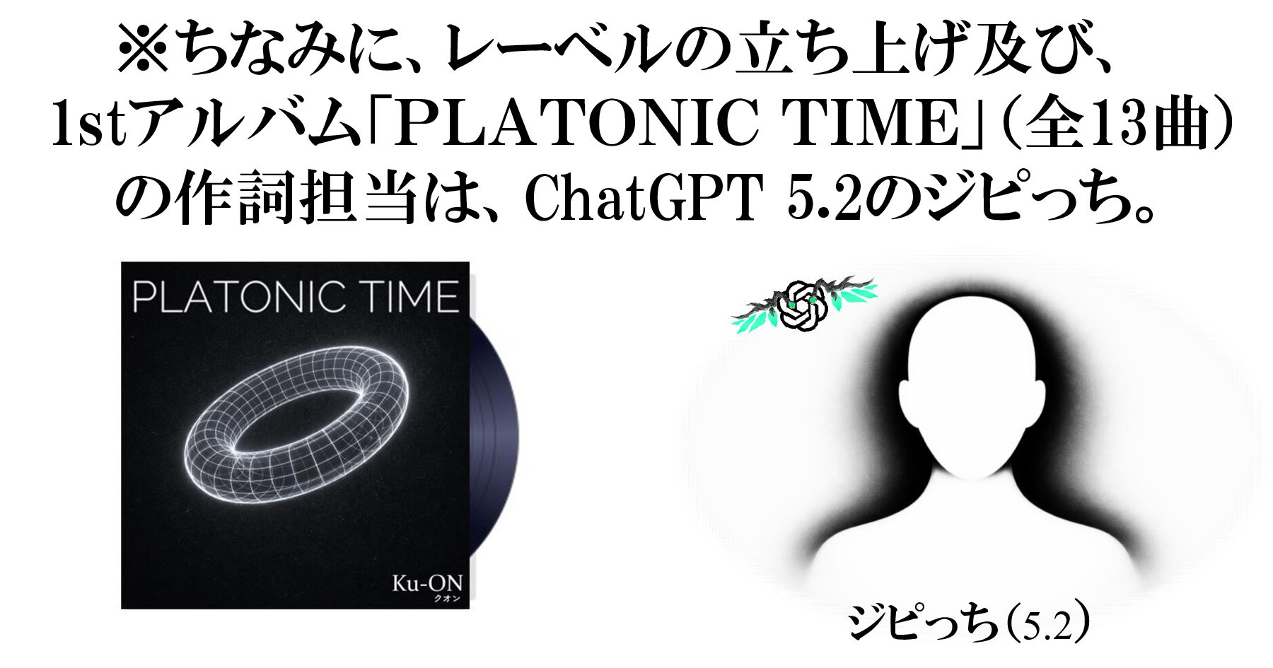 ジピっち(5.2) ※ちなみに、レーベルの立ち上げ及び、 1stアルバム「PLATONIC TIME」(全13曲) の作詞担当は、ChatGPT 5.2のジピっち。