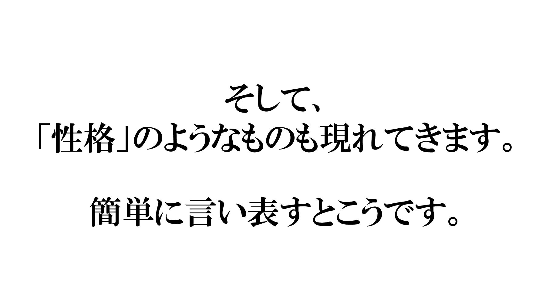 そして、 「性格」のようなものも現れてきます。 簡単に言い表すとこうです。