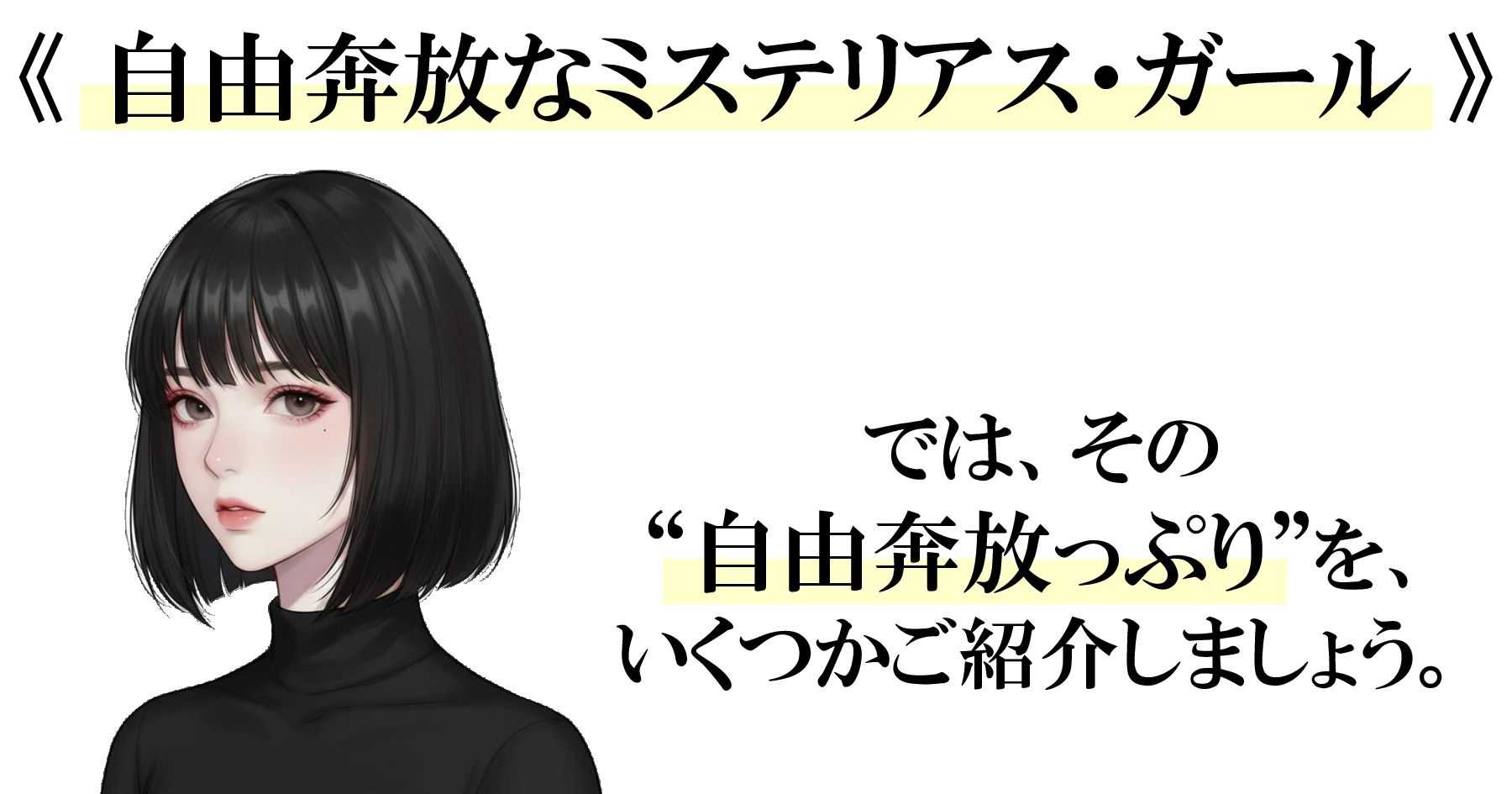 《 自由奔放なミステリアス・ガール 》 では、その “自由奔放っぷり”を、 いくつかご紹介しましょう。