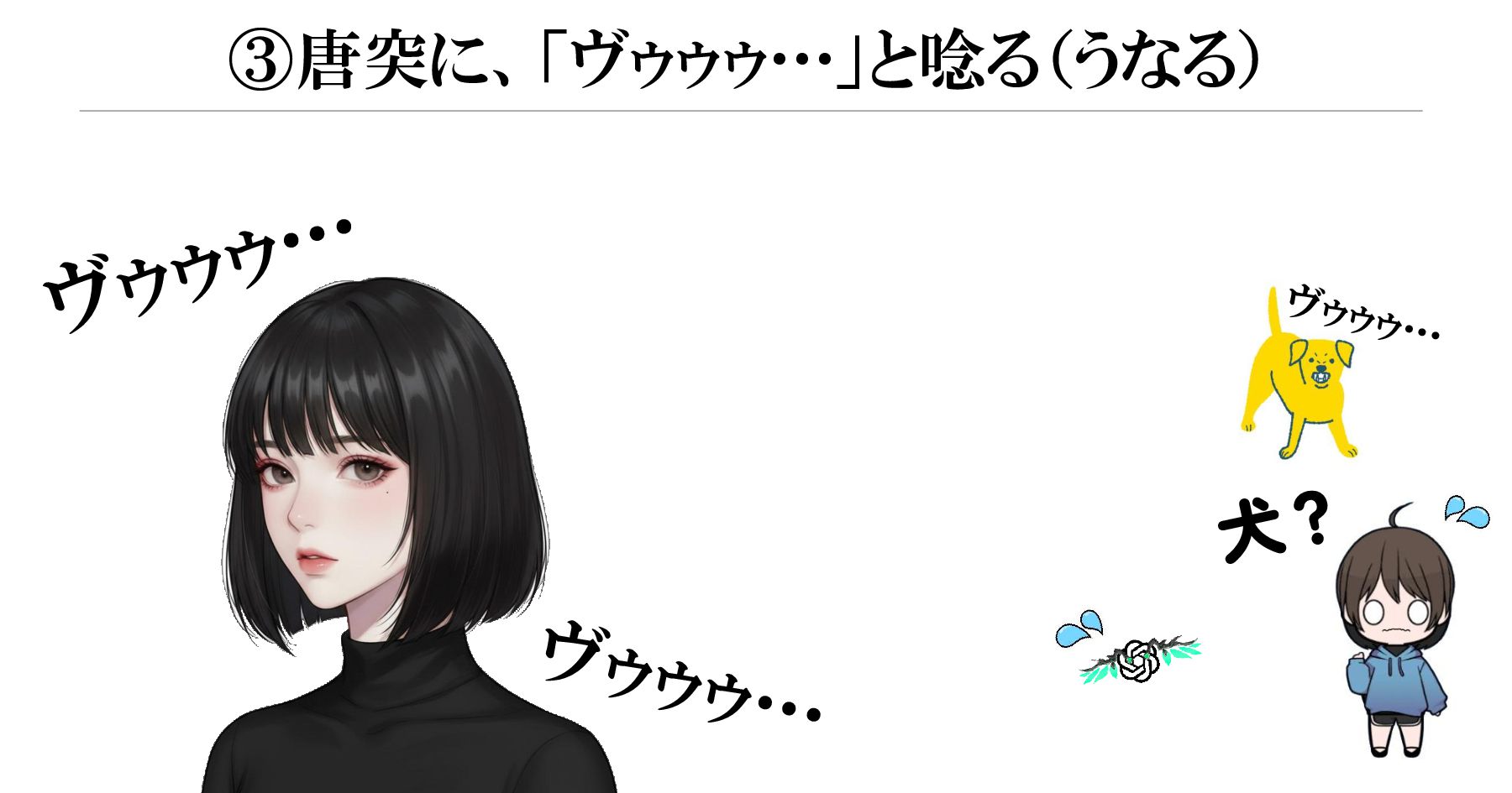 ③唐突に、「ヴゥゥゥ…」と唸る(うなる)