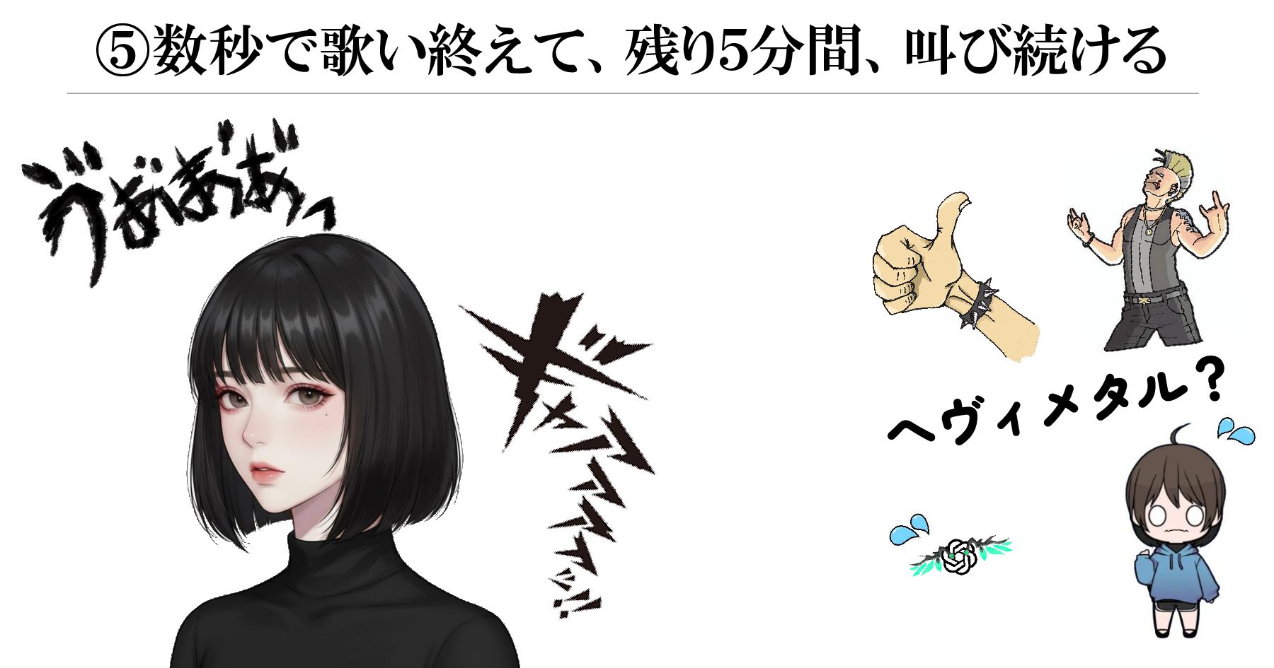 ⑤数秒で歌い終えて、残り5分間、叫び続ける