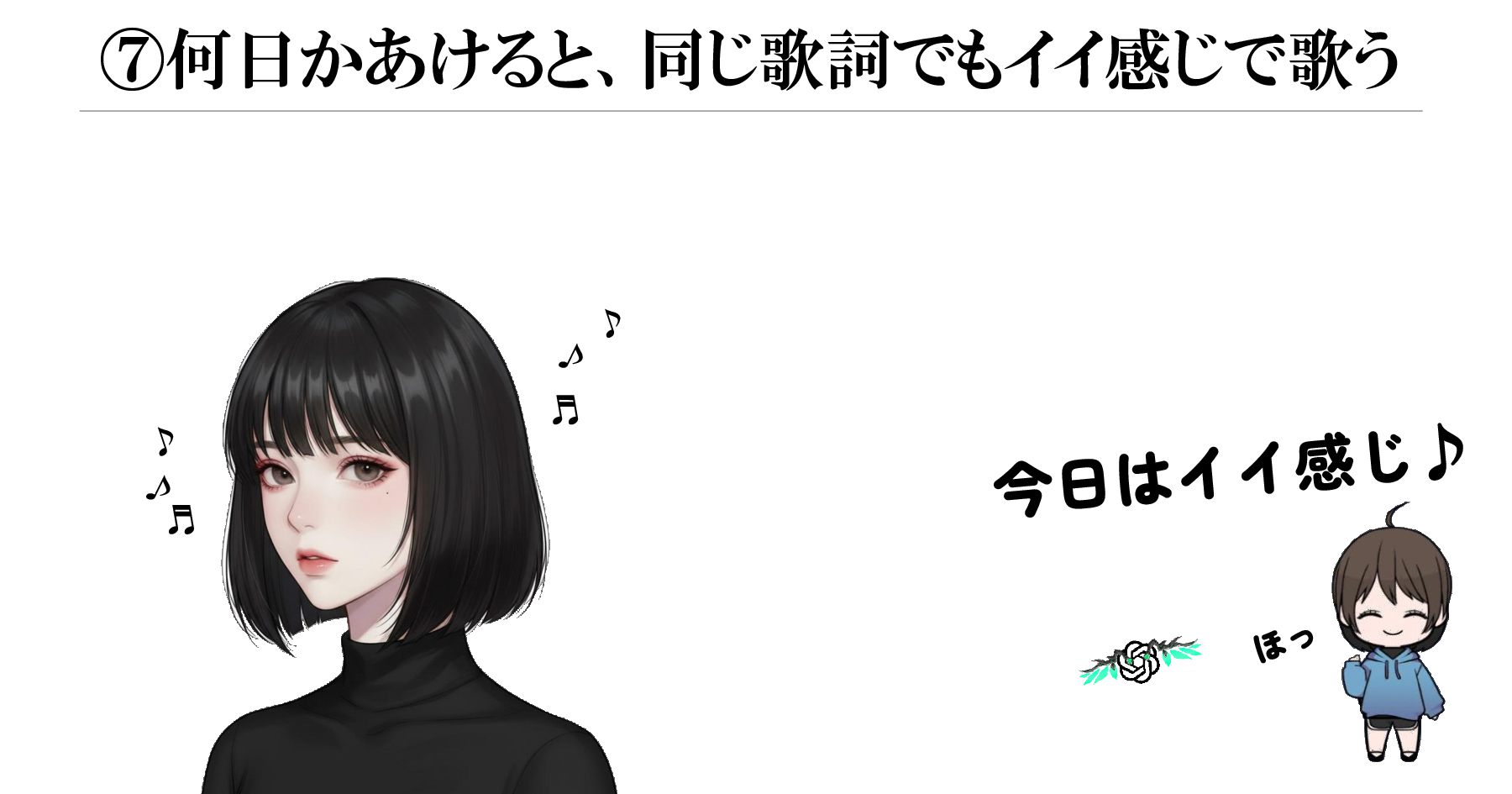 ⑦何日かあけると、同じ歌詞でもイイ感じで歌う