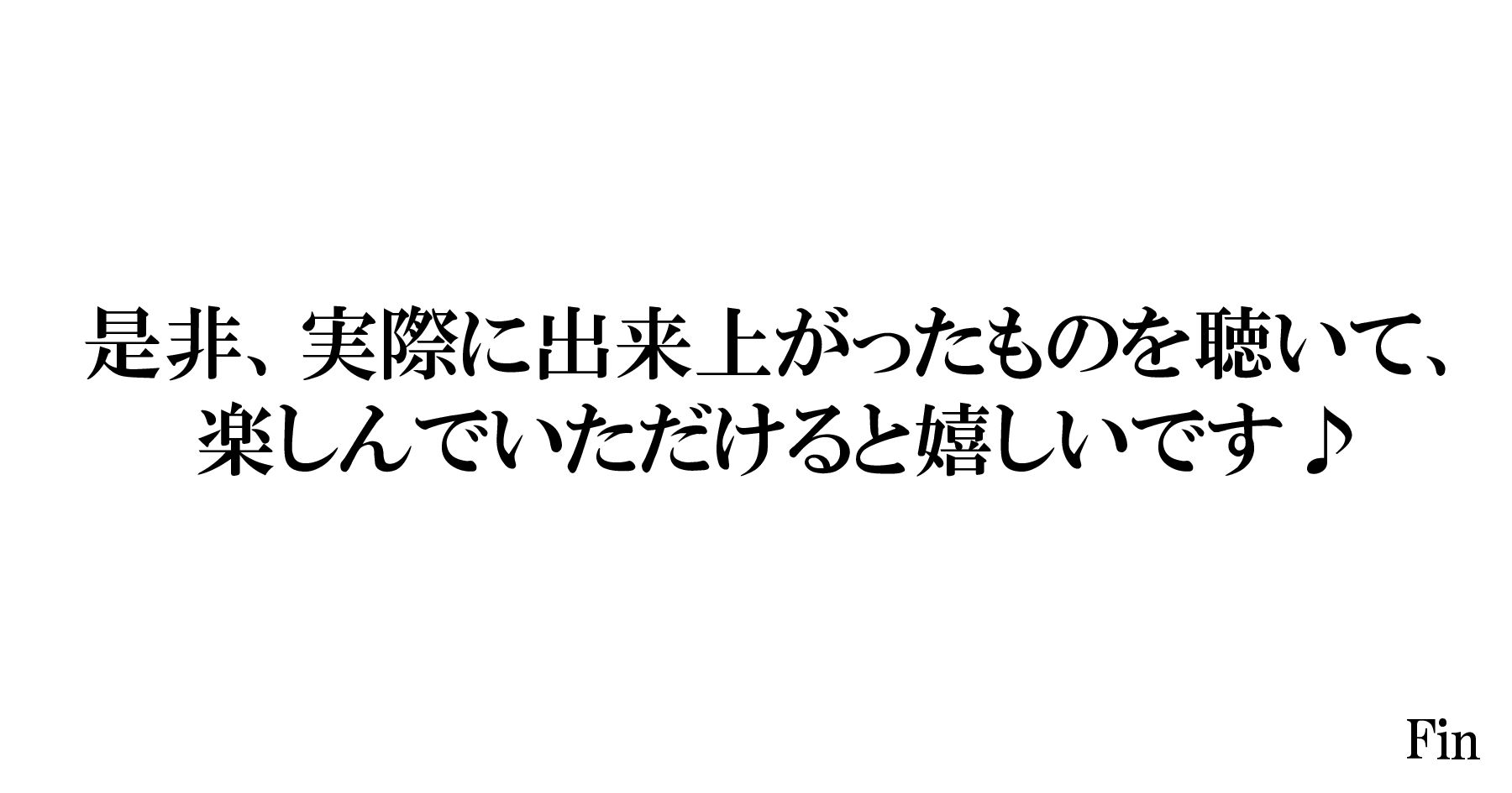 是非、実際に出来上がったものを聴いて、 楽しんでいただけると嬉しいです♪ Fin