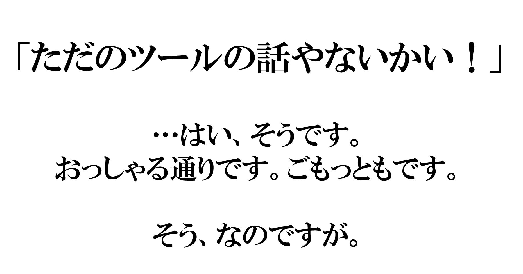「ただのツールの話やないかい!」 …はい、そうです。 おっしゃる通りです。ごもっともです。 そう、なのですが。