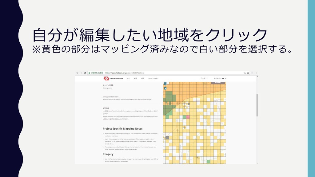 自分が編集したい地域をクリック ※黄色の部分はマッピング済みなので白い部分を選択する。