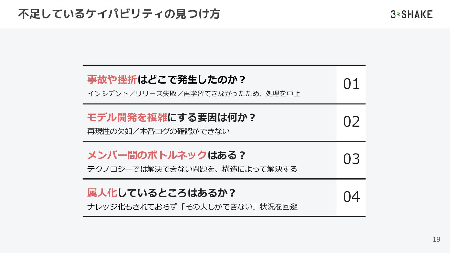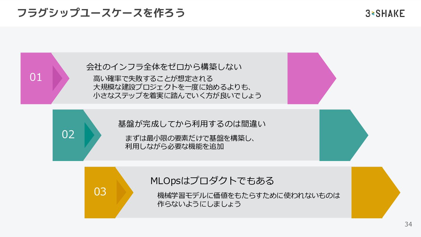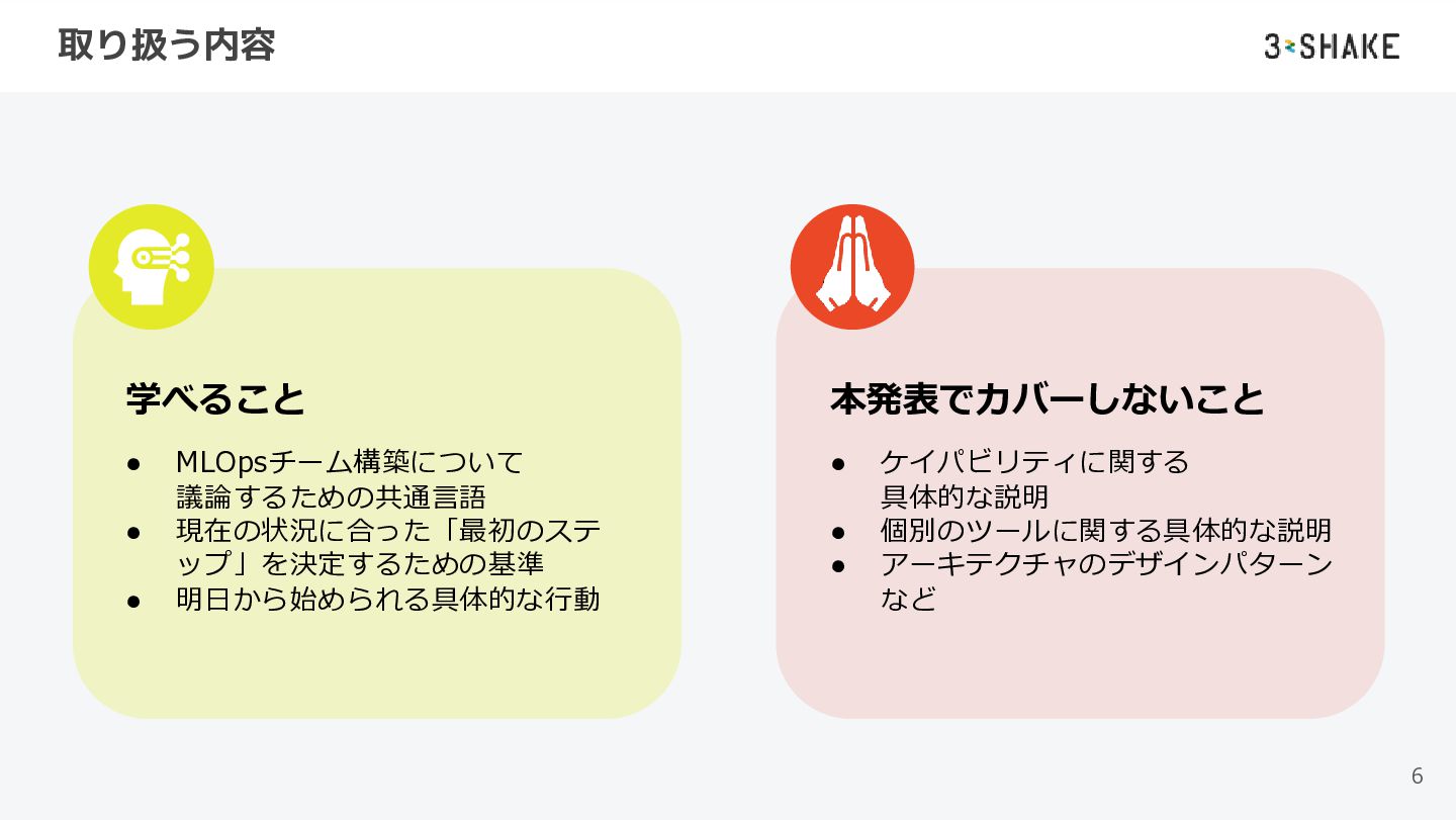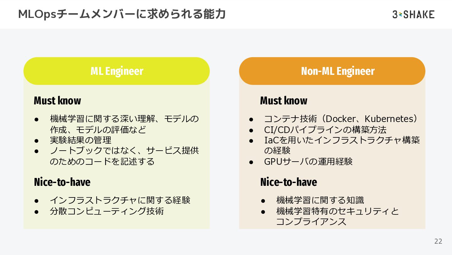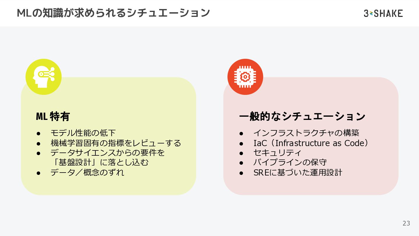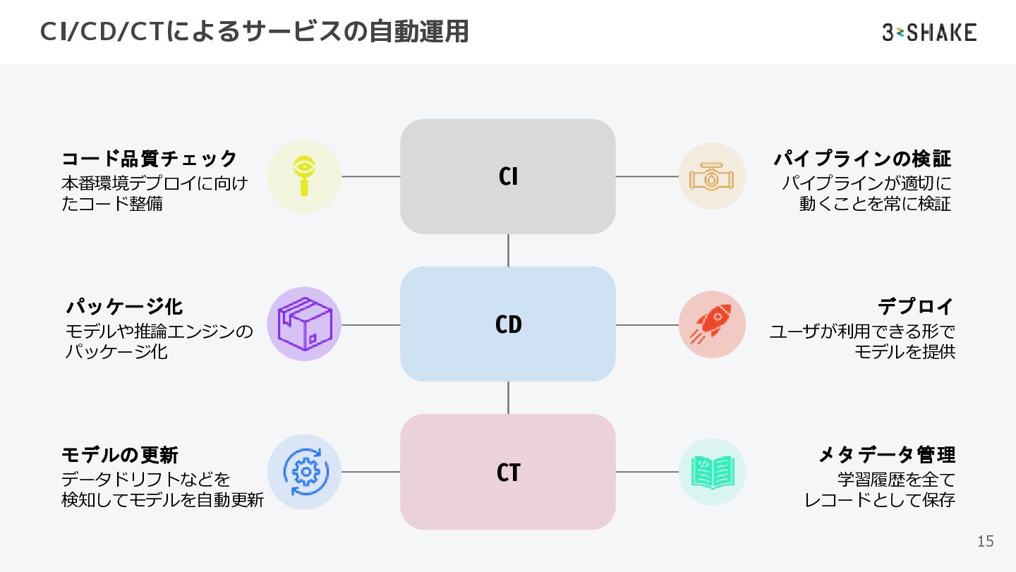 Engineer Stakeholders Model development R/A C I I C Build training pipeline R/A R/A C C I Production deployment R C C C A Monitoring / Operation C R R R/A I Incident primary response C C C R/A I Decision on keep serving model or withdrawing it. C I I I R/A Data Quality and Features R R/A I I R R: 実行責任 A: 承認責任 C: 協議 I: 情報共有 「デプロイの決定」および「撤退決定」は、 必ず事業部門に委ねられなければならない。