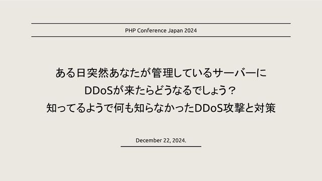 December 22, 2024. PHP Conference Japan 2024 DDoS攻撃のターニングポイント