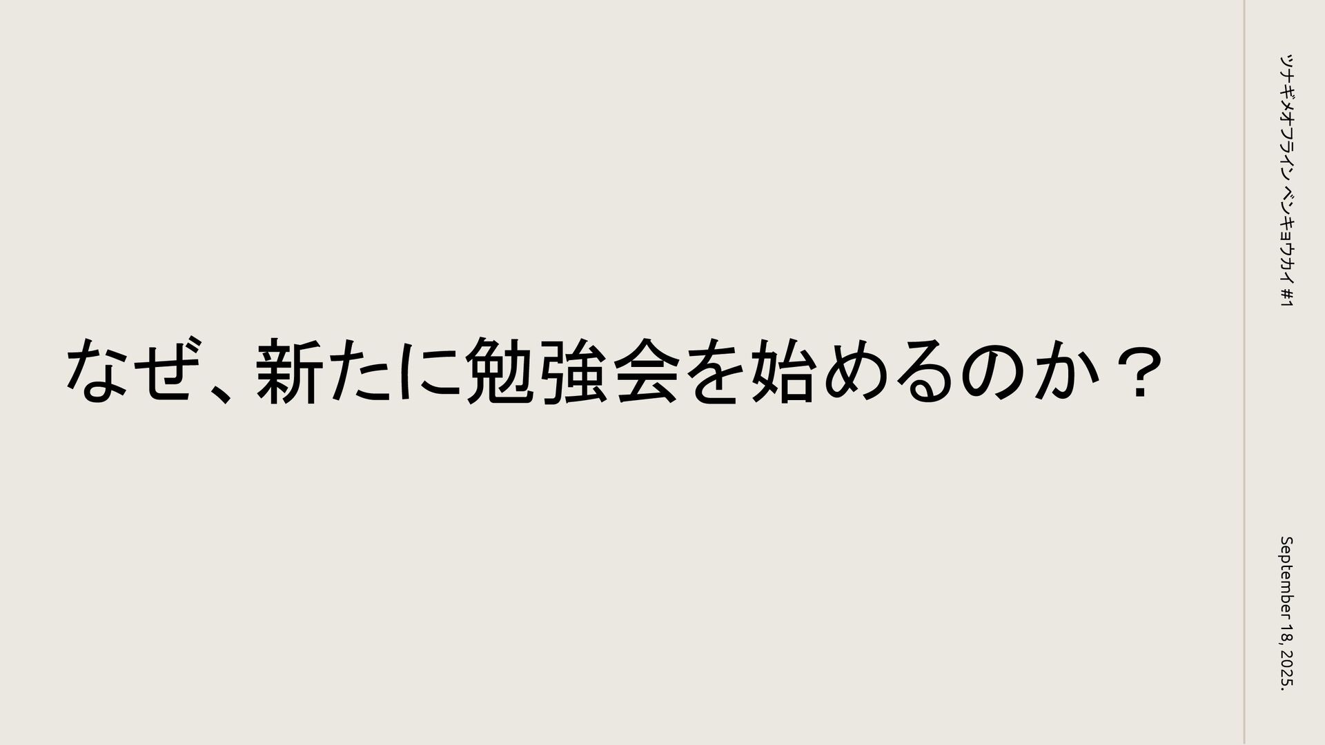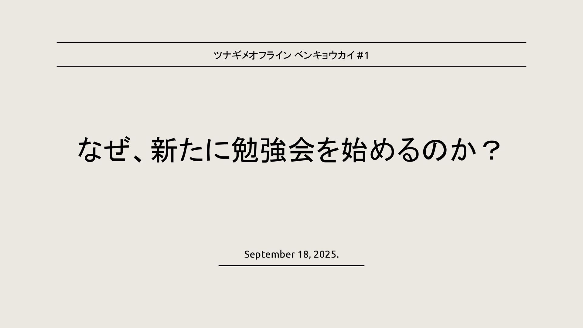 なぜ、新たに勉強会を始めるのか? September 18, 2025. ツナギメオフライン ベンキョウカイ #1