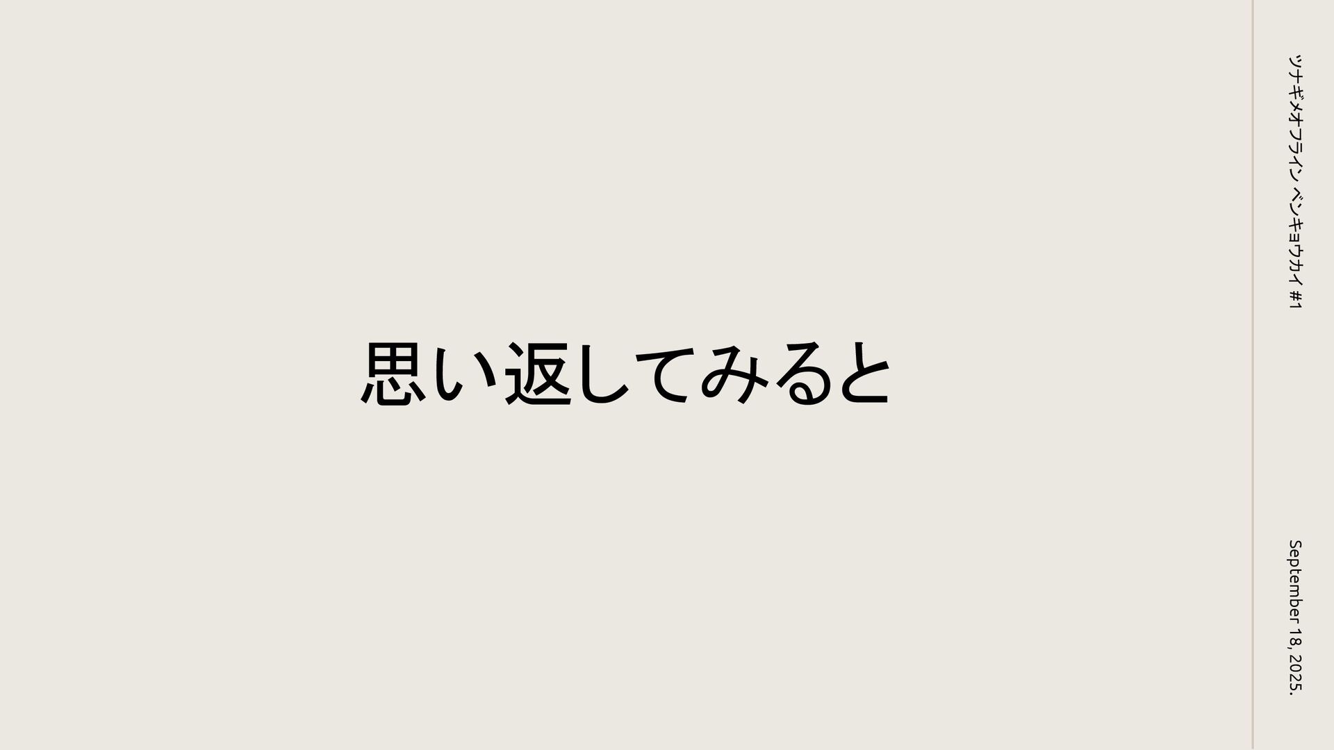 思い返してみると September 18, 2025. ツナギメオフライン ベンキョウカイ #1
