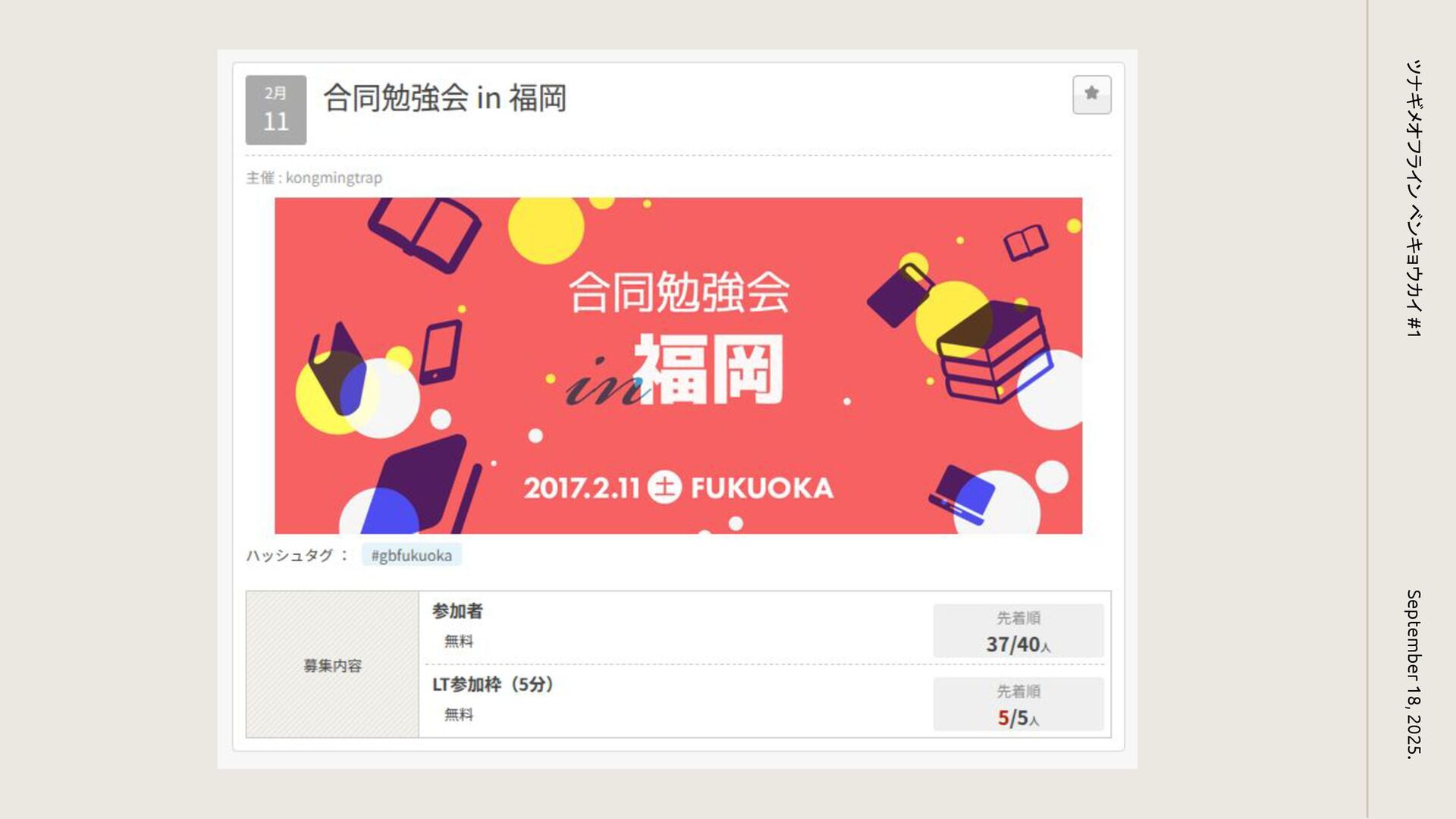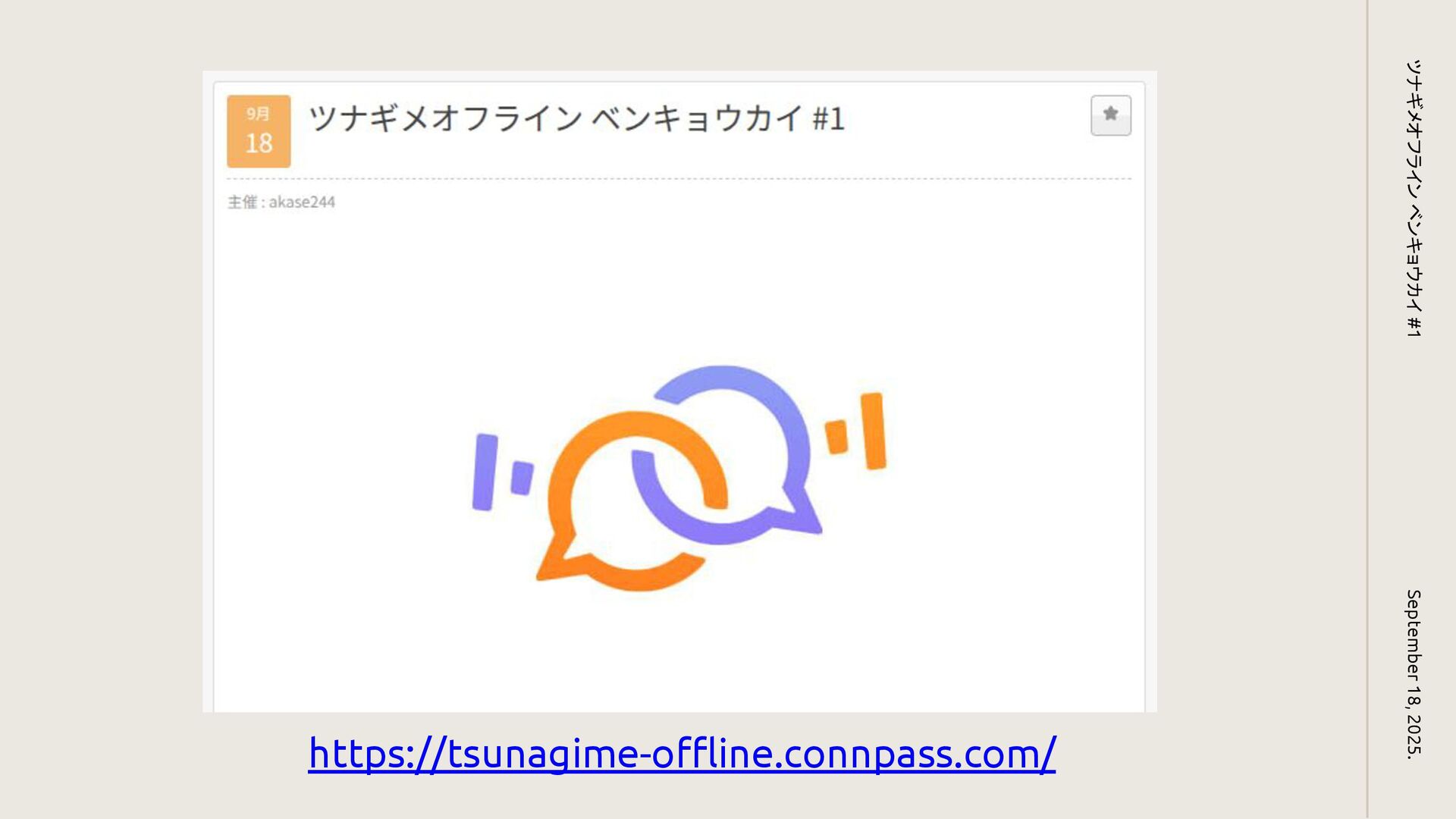 @tsunagimefm https://tsunagi.me/ September 18, 2025. ツナギメオフライン ベンキョウカイ #1