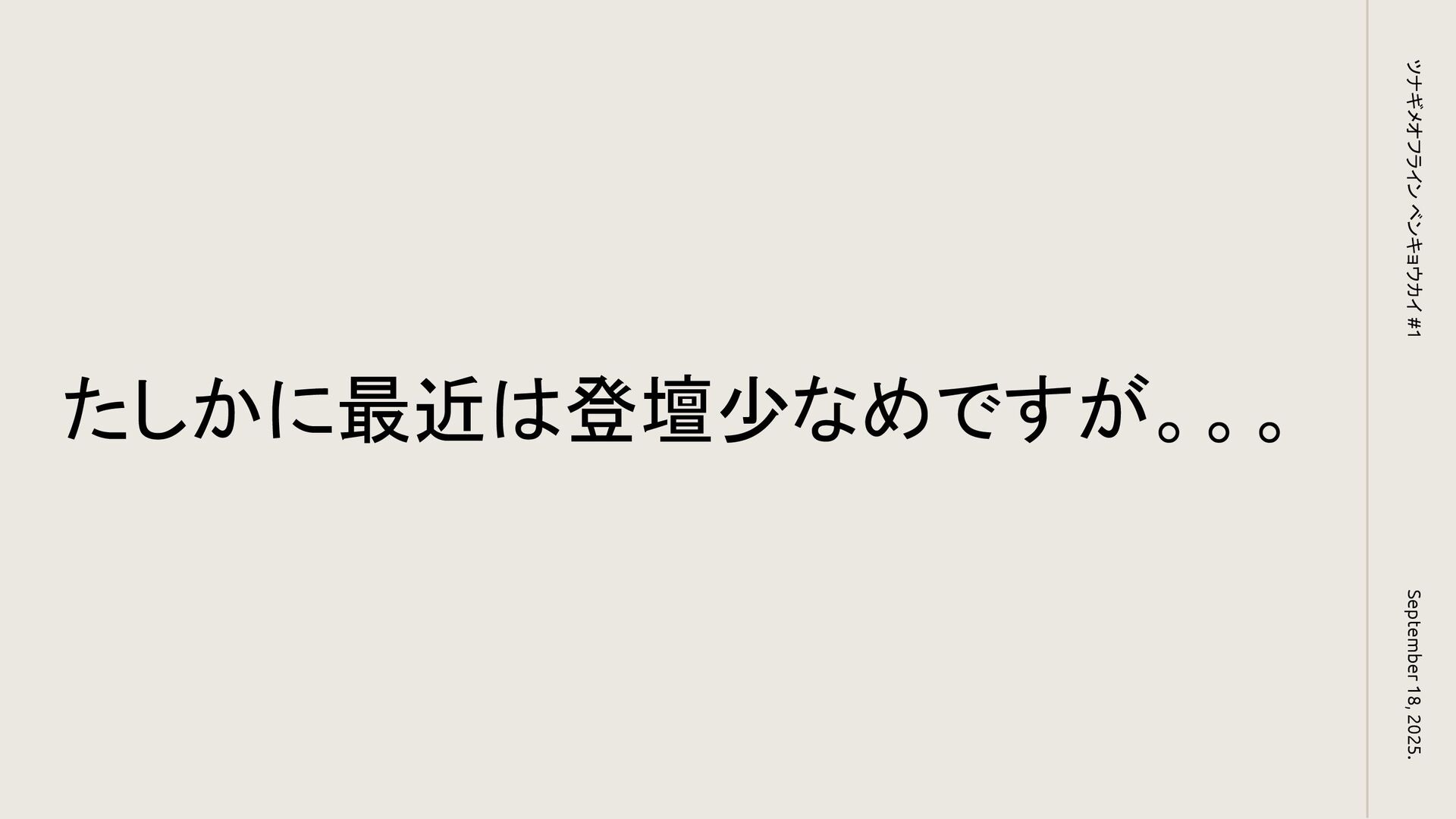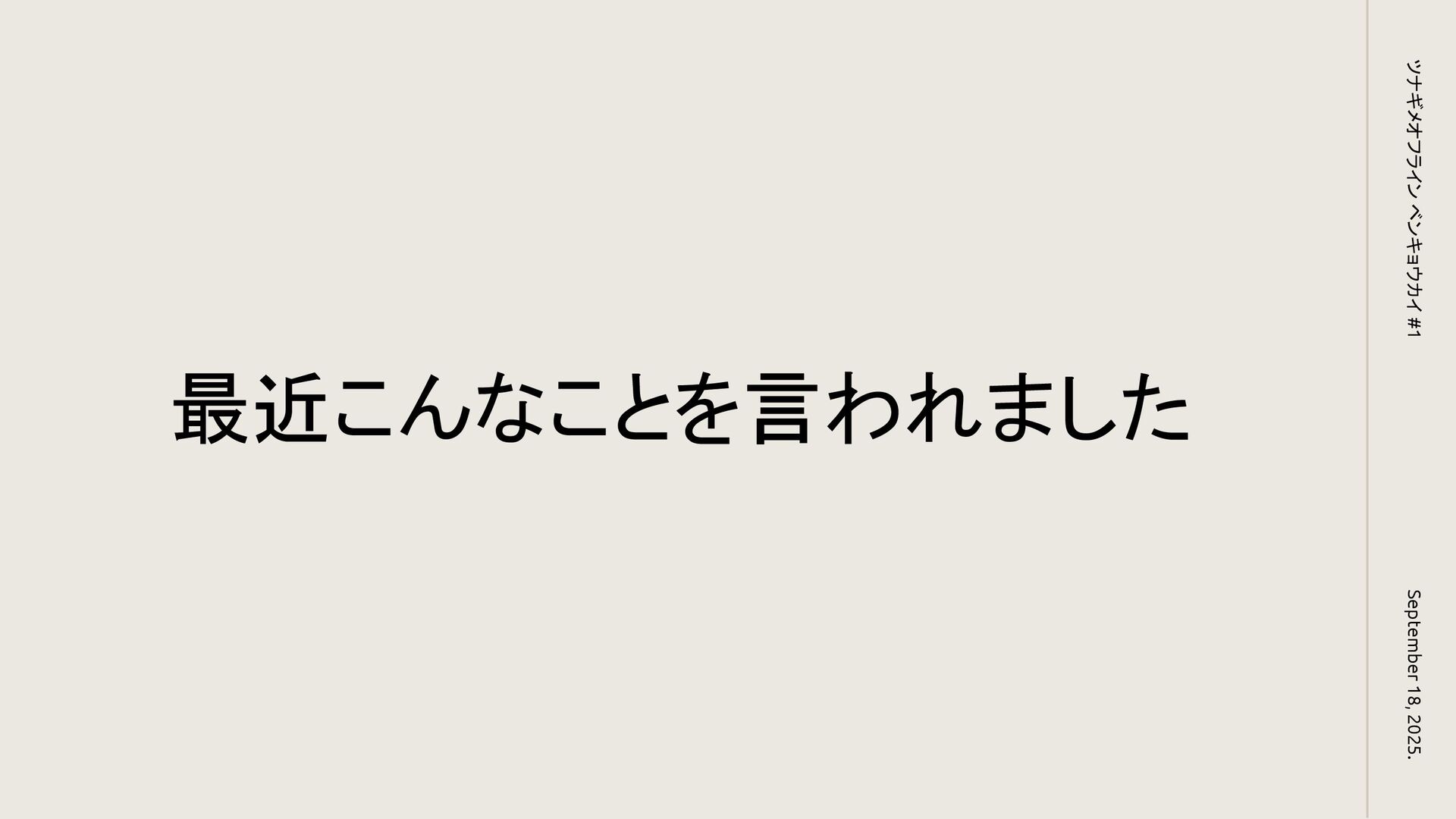 最近こんなことを言われました September 18, 2025. ツナギメオフライン ベンキョウカイ #1