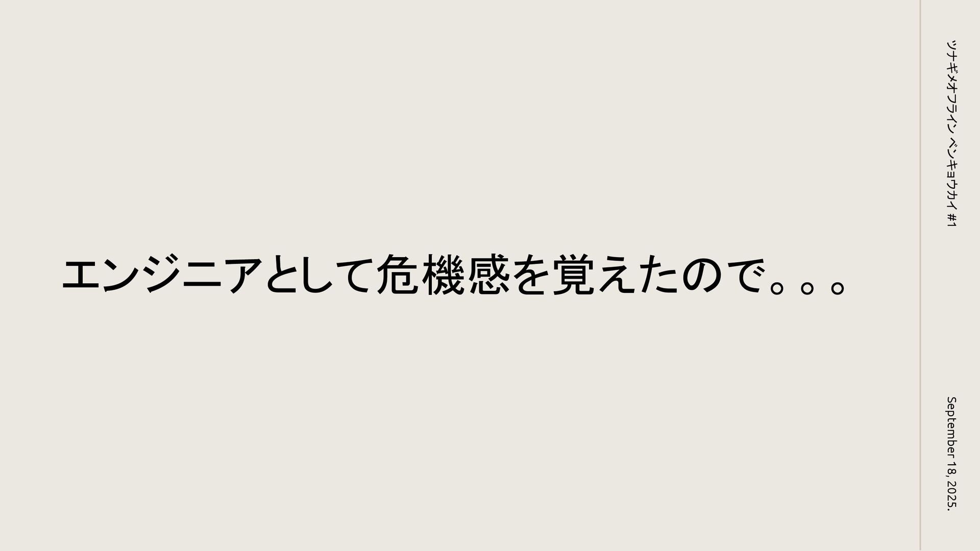 エンジニアとして危機感を覚えたので。。。 September 18, 2025. ツナギメオフライン ベンキョウカイ #1