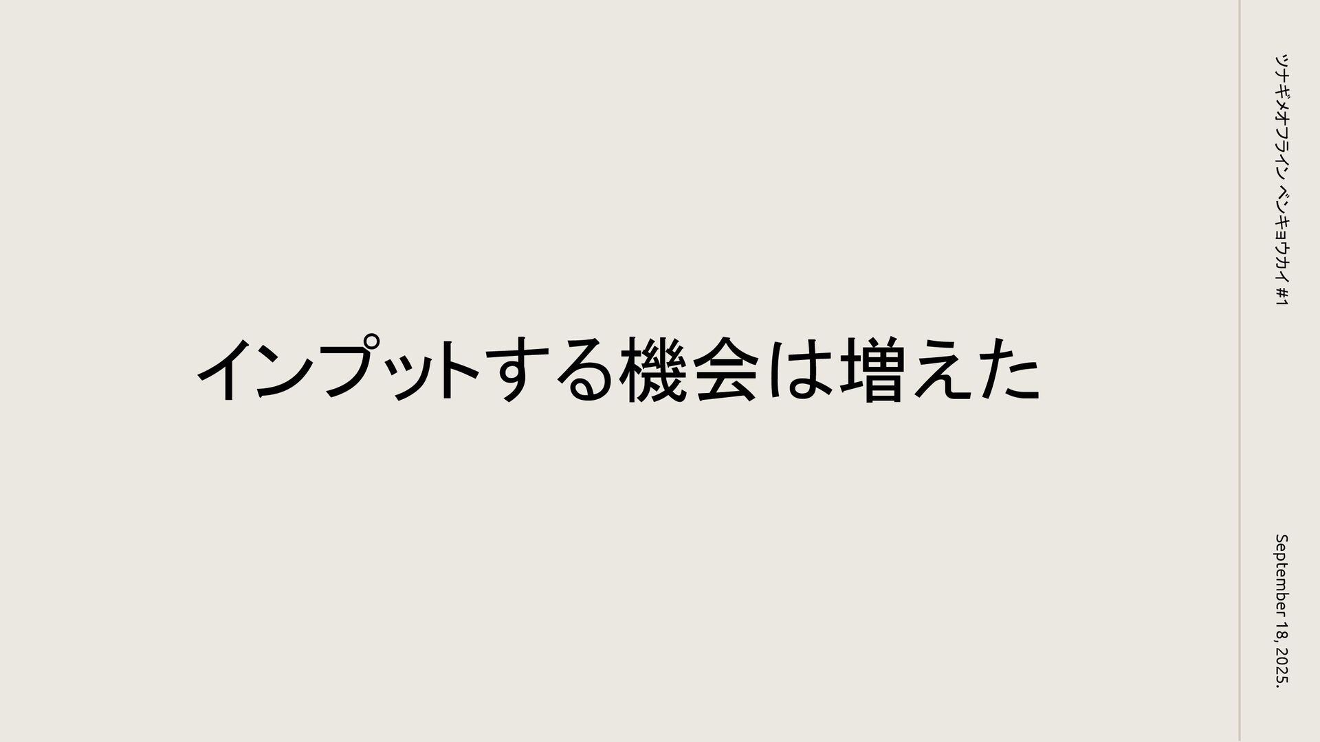 インプットする機会は増えた September 18, 2025. ツナギメオフライン ベンキョウカイ #1