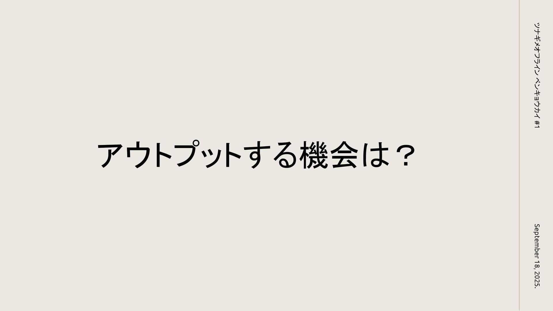 アウトプットする機会は? September 18, 2025. ツナギメオフライン ベンキョウカイ #1