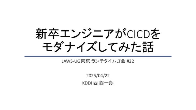 新卒エンジニアがCICDを モダナイズしてみた話 JAWS-UG東京 ランチタイムLT会 #22 2025/04/22 KDDI 西 総一朗