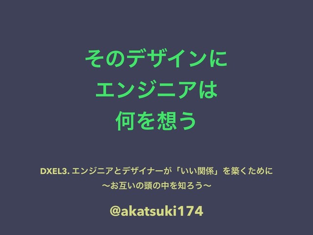 @akatsuki174 ͦͷσβΠϯʹ ΤϯδχΞ ԿΛ͏ DXEL3. ΤϯδχΞͱσβΠφʔ͕ʮ͍͍ؔʯΛஙͨ͘Ίʹ ʙ͓ޓ͍ͷ಄ͷதΛΖ͏ʙ