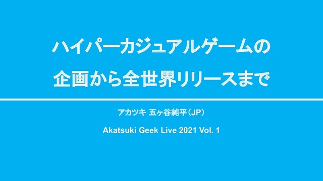 ハイパーカジュアルゲームの 企画から全世界リリースまで アカツキ 五ヶ谷純平(JP) Akatsuki Geek Live 2021 Vol. 1