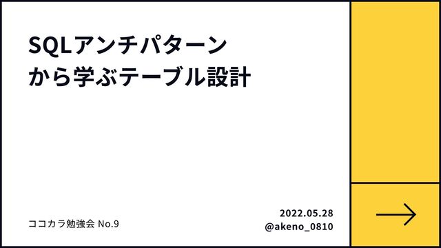@akeno_0810 2022.05.28 SQLアンチパターン から学ぶテーブル設計 ココカラ勉強会 No.9
