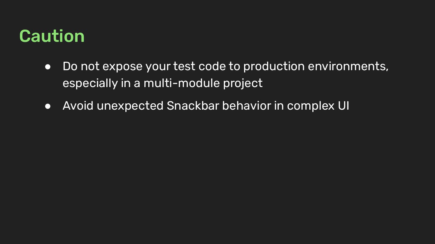 environments, especially in a multi-module project • Avoid unexpected Snackbar behavior in complex UI
