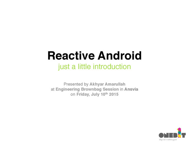 Machin. ! • Other language implementations also available: RxScala, RxGroovy, RxKotlin, RxJS, etc. All of them are implemented with respect to respective languages’ style & idioms.! • RxAndroid is RxJava + Android helper classes!