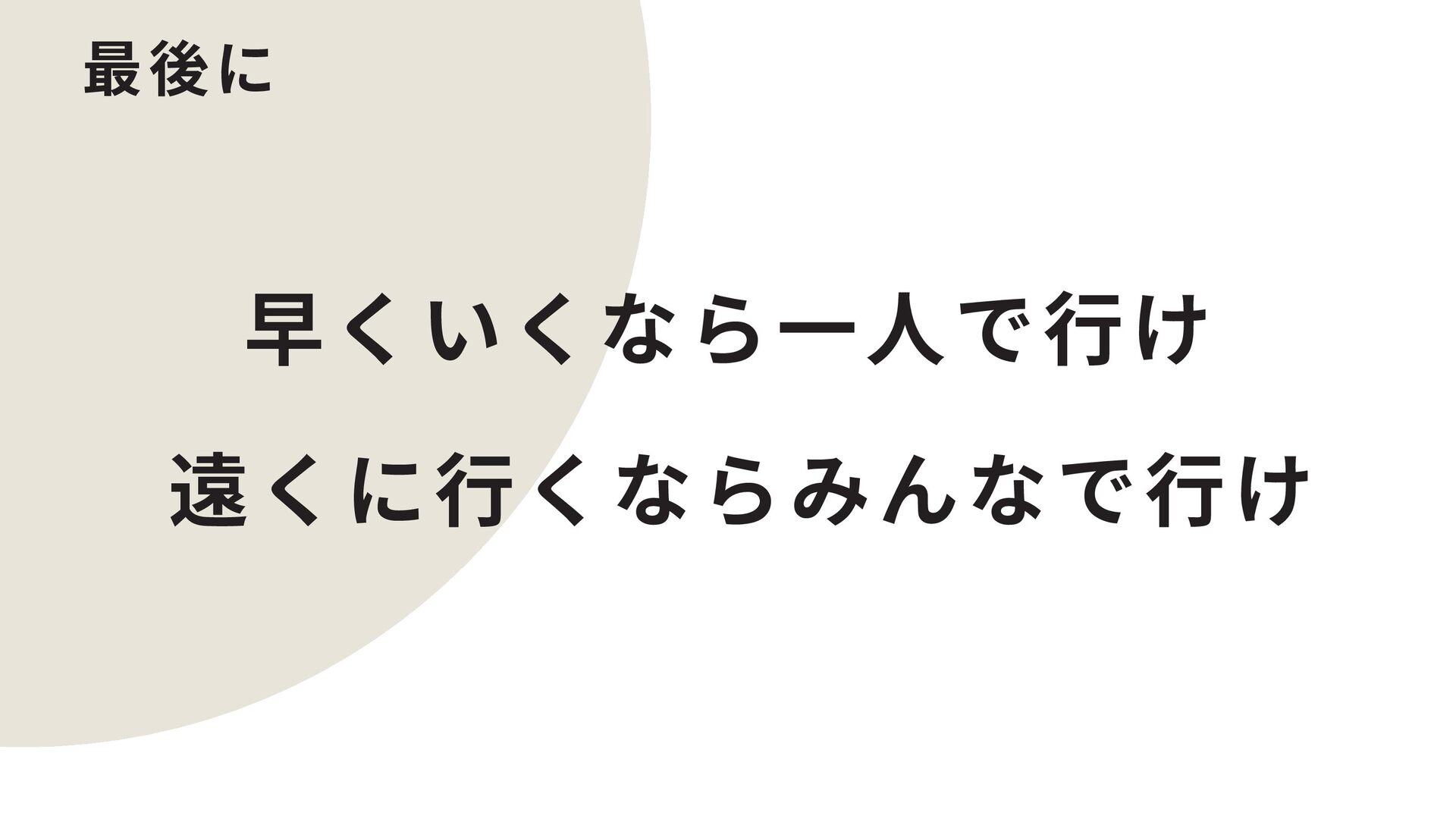 最後に 早くいくなら一人で行け 遠くに行くならみんなで行け