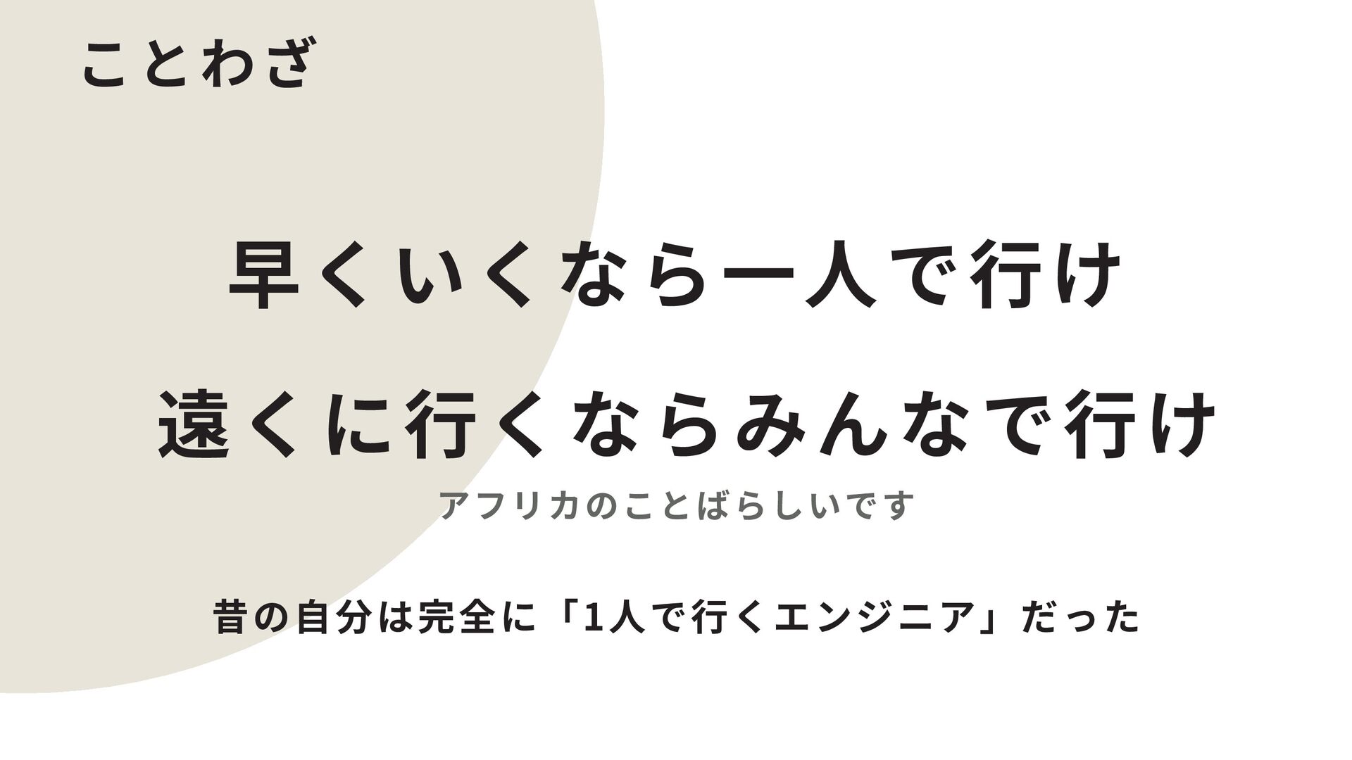 ことわざ 早くいくなら一人で行け 遠くに行くならみんなで行け 昔の自分は完全に「1人で行くエンジニア」だった アフリカのことばらしいです