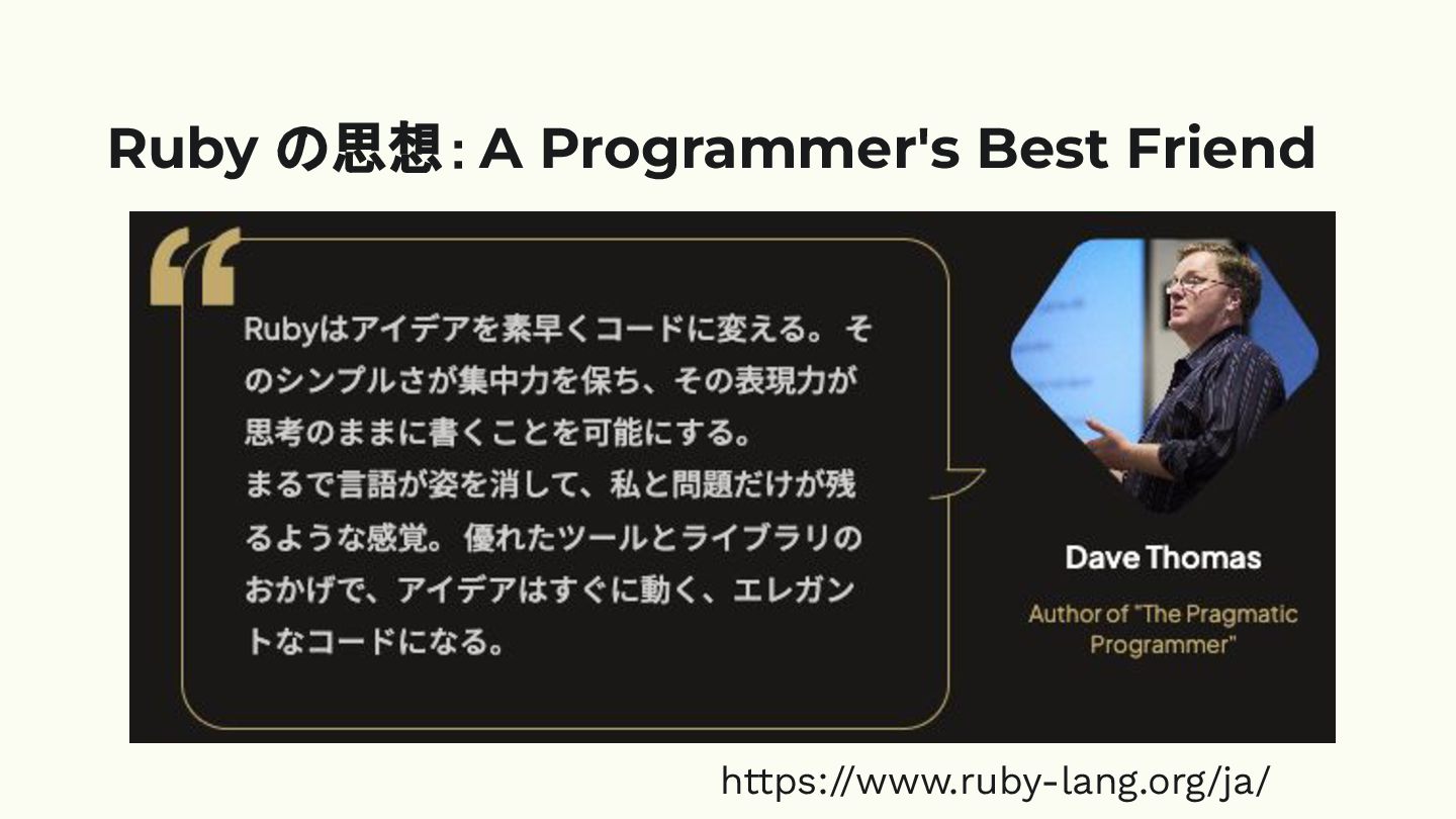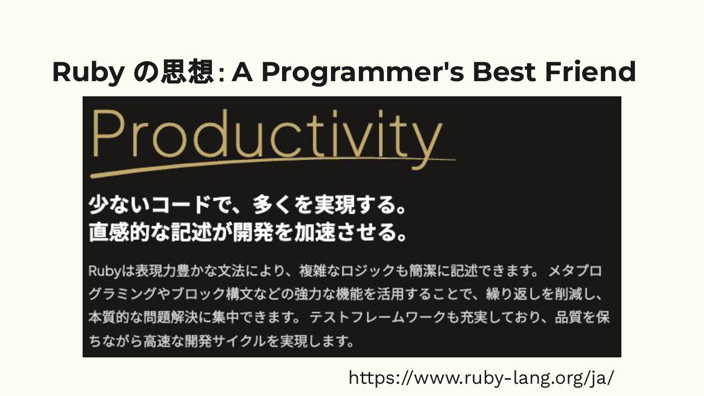 Ruby の思想:A Programmer's Best Friend https://www.ruby-lang.org/ja/