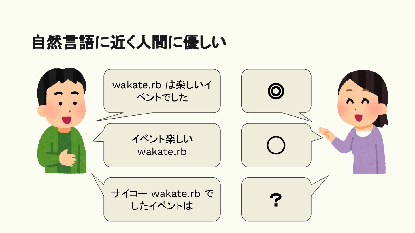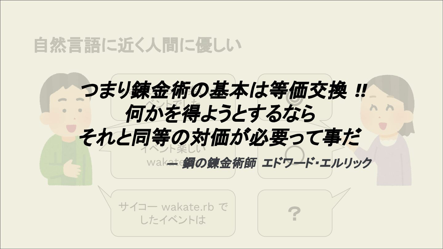 自然言語に近く人間に優しい wakate.rb は楽しいイ ベントでした ◎ イベント楽しい wakate.rb サイコー wakate.rb で