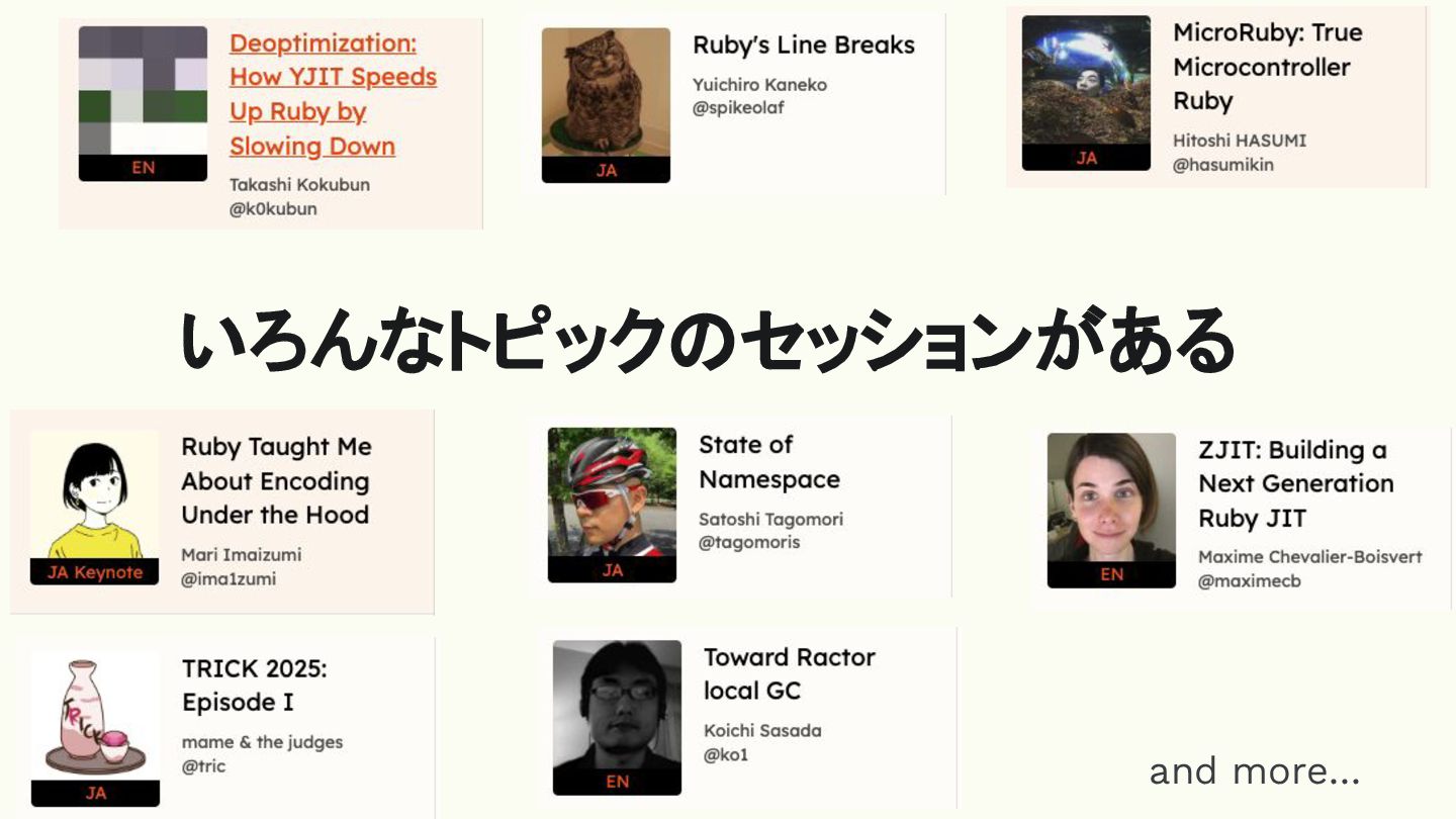 いろんなトピックのセッションがある and more…