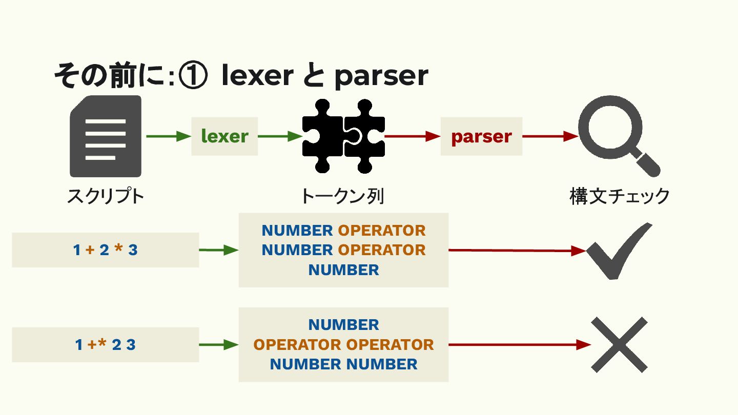 その前に:① lexer と parser 1 + 2 * 3 NUMBER