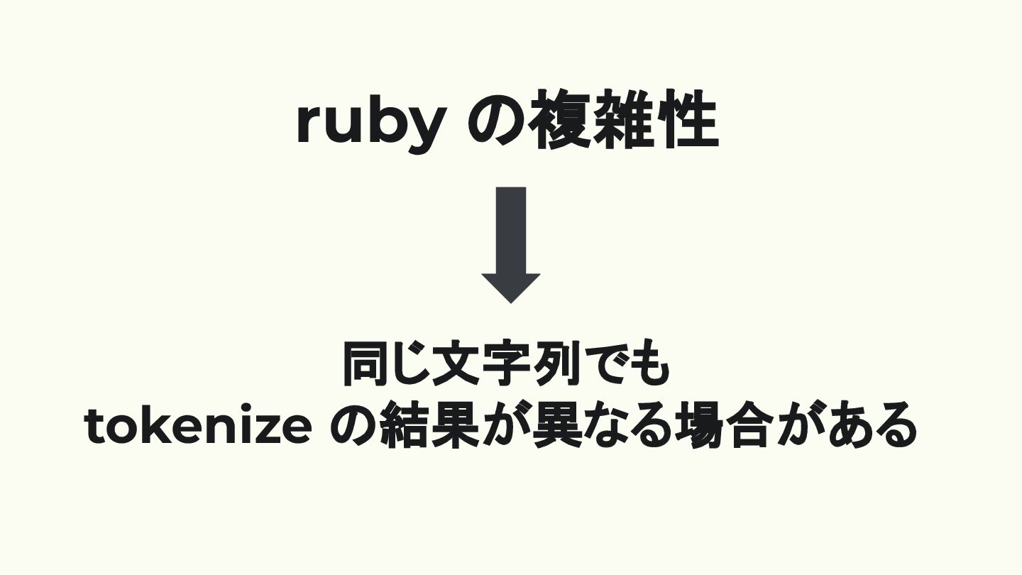 ruby の複雑性 同じ文字列でも tokenize の結果が異なる場合がある