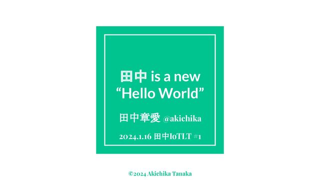 田中 is a new “Hello World” ©2024 Akichika Tanaka 田中章愛