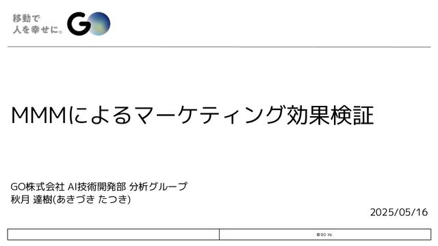 Carryover Effectと呼ばれる。 時間的に持続・持続し減衰していく状態を表現する 施策効果の飽和(Hill) 𝐻𝑖𝑙𝑙 𝑥𝑡,𝑚 ; 𝑘𝑚 , 𝑆𝑚 = 1 1+( Τ 𝑥𝑡,𝑚 𝑘𝑚)−𝑆𝑚 , 𝑥𝑡,𝑚 ≥ 0 施策効果の持続・減衰(Adstock) 𝑎𝑑𝑠𝑡𝑜𝑐𝑘 𝑥𝑡−𝐿+1,𝑚 , … , 𝑥𝑡,𝑚 ; 𝑤𝑚 , 𝐿 = σ𝑙=0 𝐿−1 𝑤𝑚(𝑙)𝑥𝑡−𝑙,𝑚 σ𝑙=0 𝐿−1 𝑤𝑚(𝑙) 投資金額 積み上げ 施策効果 経過時間 施策効果 𝑦𝑡 = 𝜏 + 𝑚 𝛽𝑚 ∗ 𝐻𝑖𝑙𝑙(𝑎𝑑𝑠𝑡𝑜𝑐𝑘(𝑥𝑡−𝐿+1,𝑚 , … , 𝑥𝑡,𝑚 ; 𝑤𝑚 , 𝐿) ; 𝐾𝑚 𝑆𝑚 ) + 𝑐=1 𝐶 𝛾𝑐 𝑧𝑡,𝑐 + 𝜖𝑡