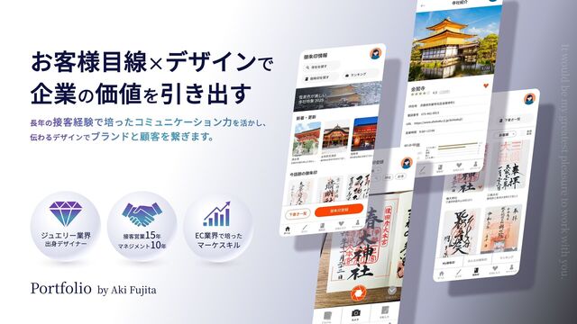 Special Thanks! We look forward to hearing from you. 貴重なお時間をいただき誠にありがとうございます。 お客様の課題解決のためのデザインパートナーとして お役に立つことができましたら、これほど嬉しいことはございません。 ぜひお気軽にお問い合わせいただけますと幸いです。 今後のご縁を心よりお待ち申し上げております。