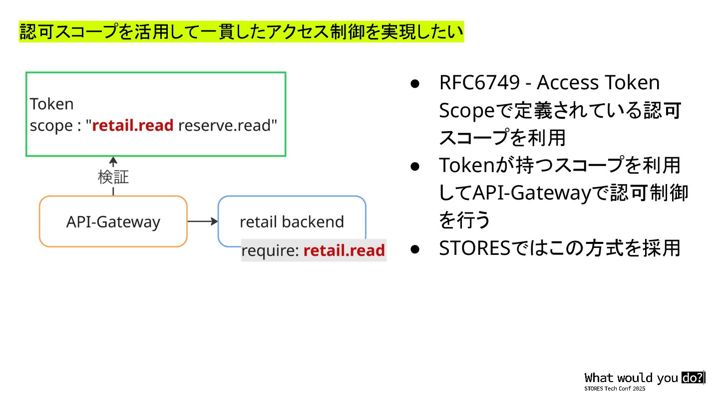(補足) ※STORESは3rd Party向けの外部公開APIの提供も行っており、そちらは認可 スコープのチェックを継続